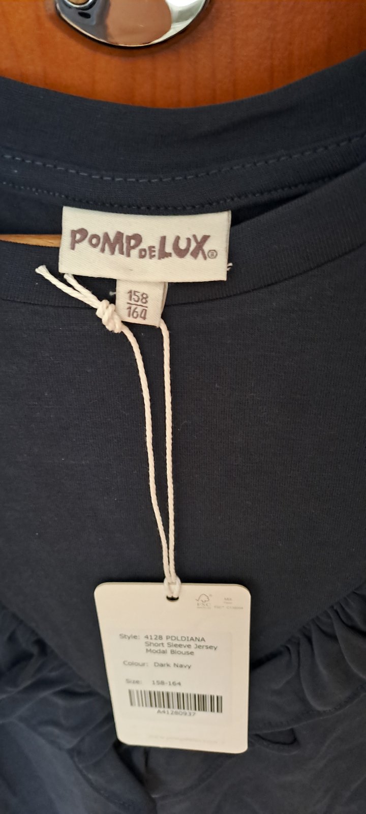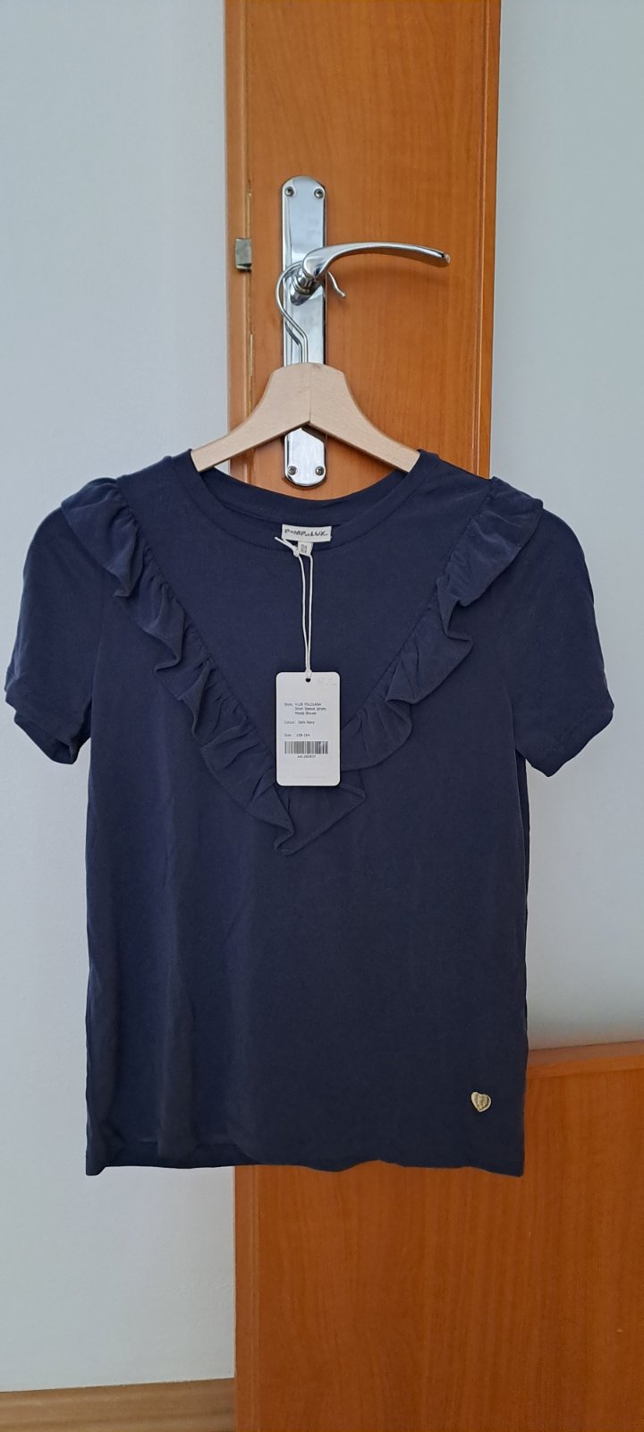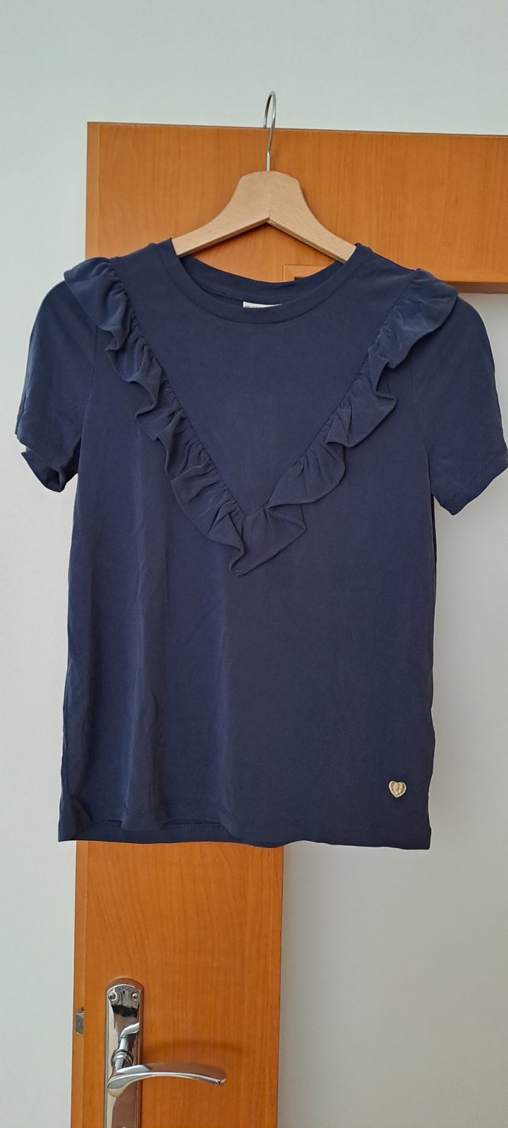 Ponúkam nový nenosený top alepo tričko ešte s výsačkou 158-164cm,veľmi príjemný materiál dostali sme darom a je nám to malé, celková dlžka -58cm,šírka od pazuchy k pazuche -43cm, šírka od ramena k ramenu -27cm. Cena bez poštovného, možný osobný odber.