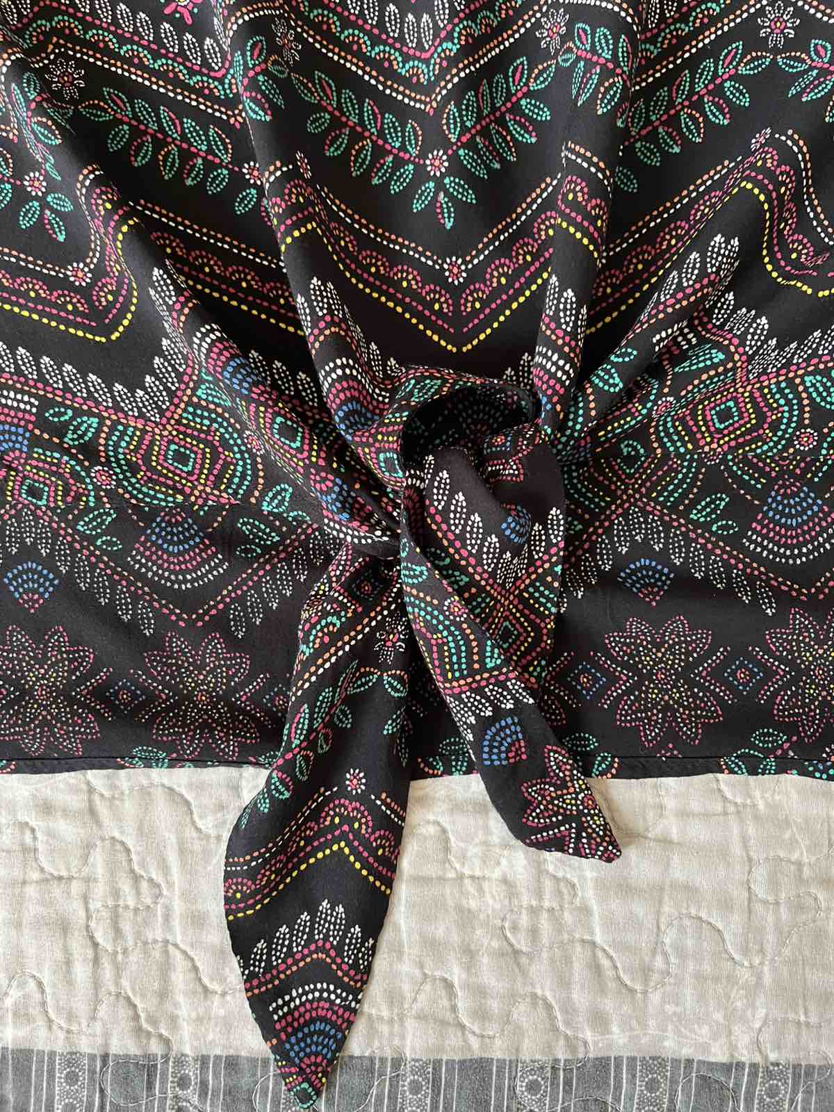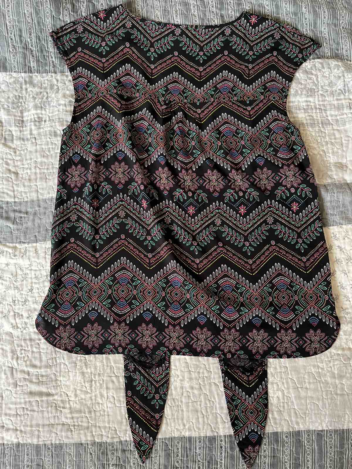 Oblečená len raz, ako nová, bez chybičky, má len odstrihnutý vnútorný štítok. 100 % stav. Kupovaná v CaA, veľkosť 38, šírka 47cm, dĺžka 61cm. Matreiál tenký, vzdušný, Farba čierna s kvetinkami. Cen...