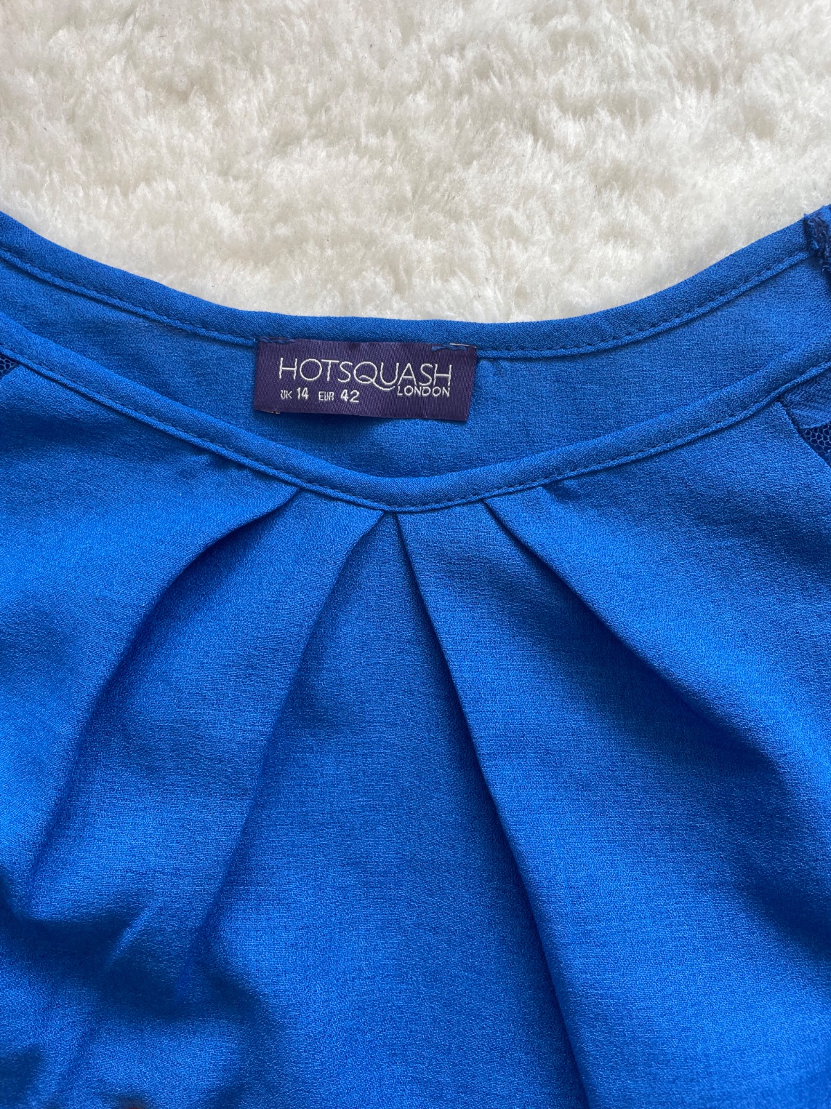 Luxusna bluzka s cipkou znacky Hotsquash v parizskej modrej, nariasena v dekolte, bez chyb, PC 66€