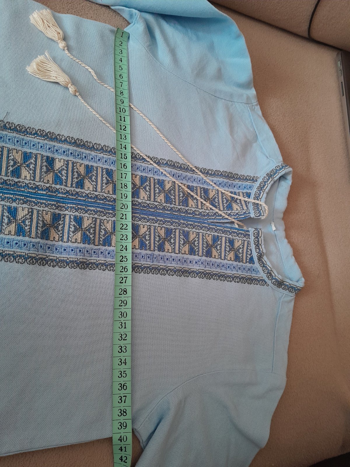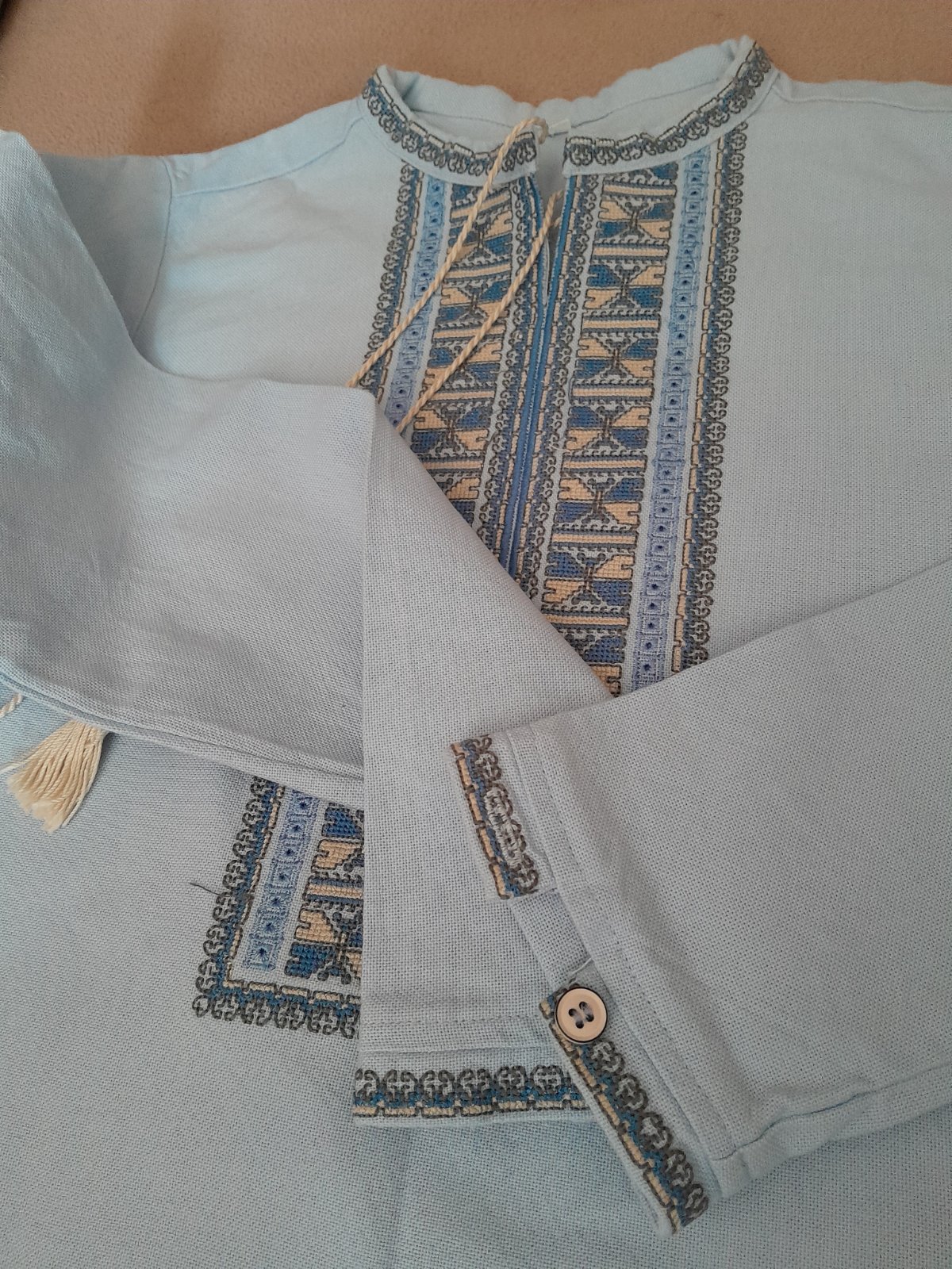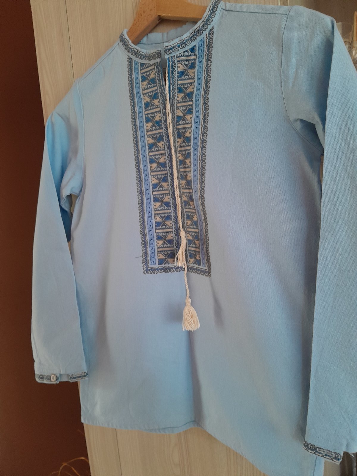 Predám novú, krásne vyšívanú košeľu pre chlapca, na vystúpenia, prípadne iné príležitosti, pevné plátno, velkosť 152, rozmery dlžka 56cm, šírka 40cm, rukáv dlžka 50cm
