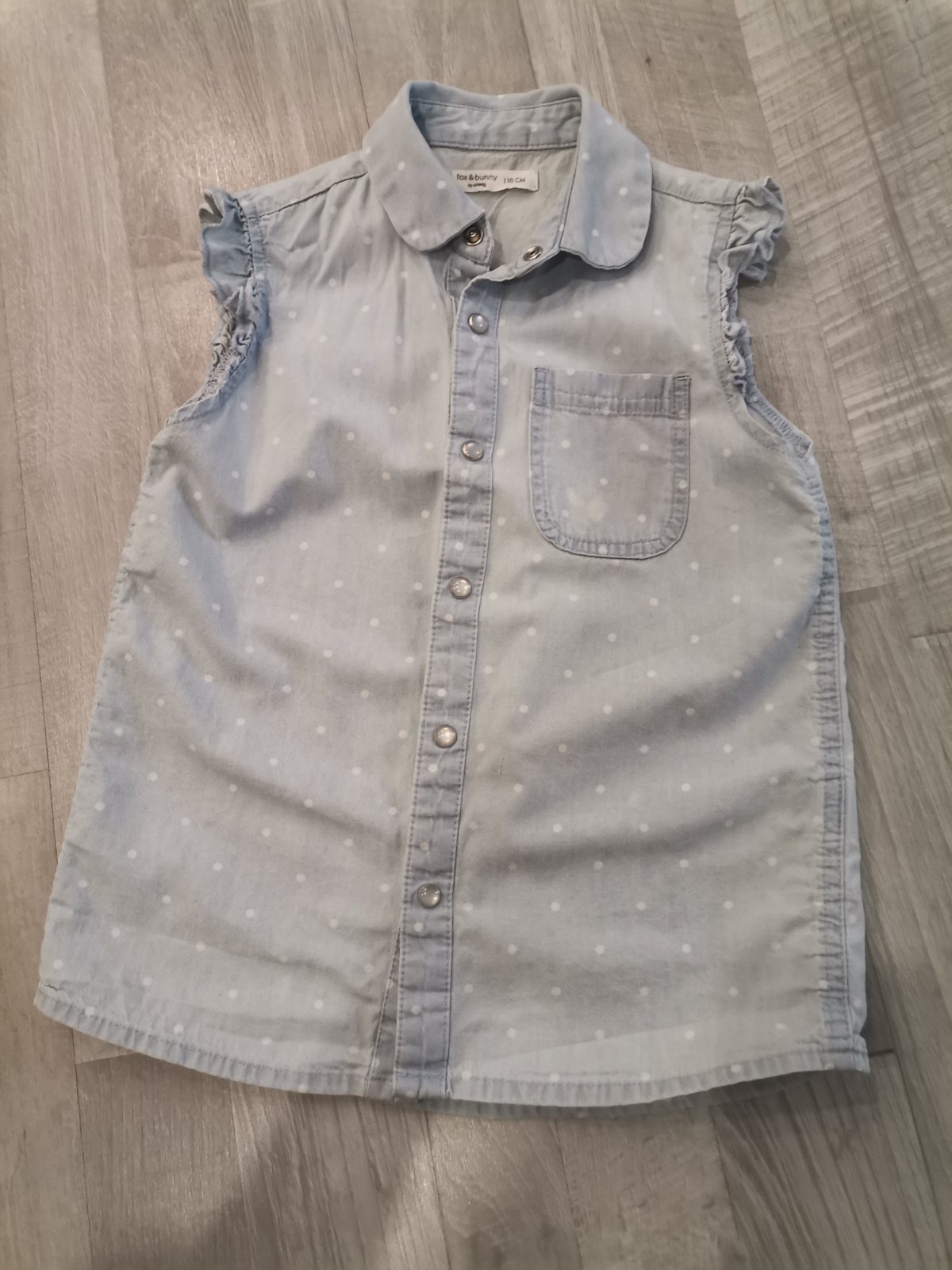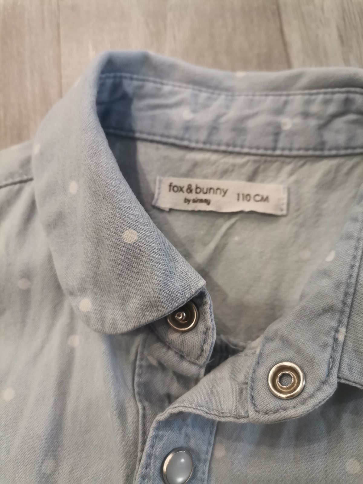 Pekná svetlunkomodra košeľa so zapínaním na cvok. Veľkosť 110 aj sedí ☺️