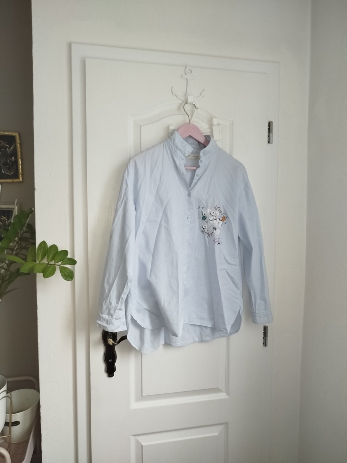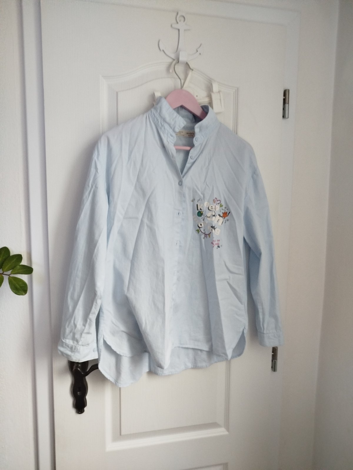 Pekná košeľa.Zara vpredu pri diérkach a gombikoch natrhnuta dĺžka 65cm,šírka pod pazuchami 51x2cm.