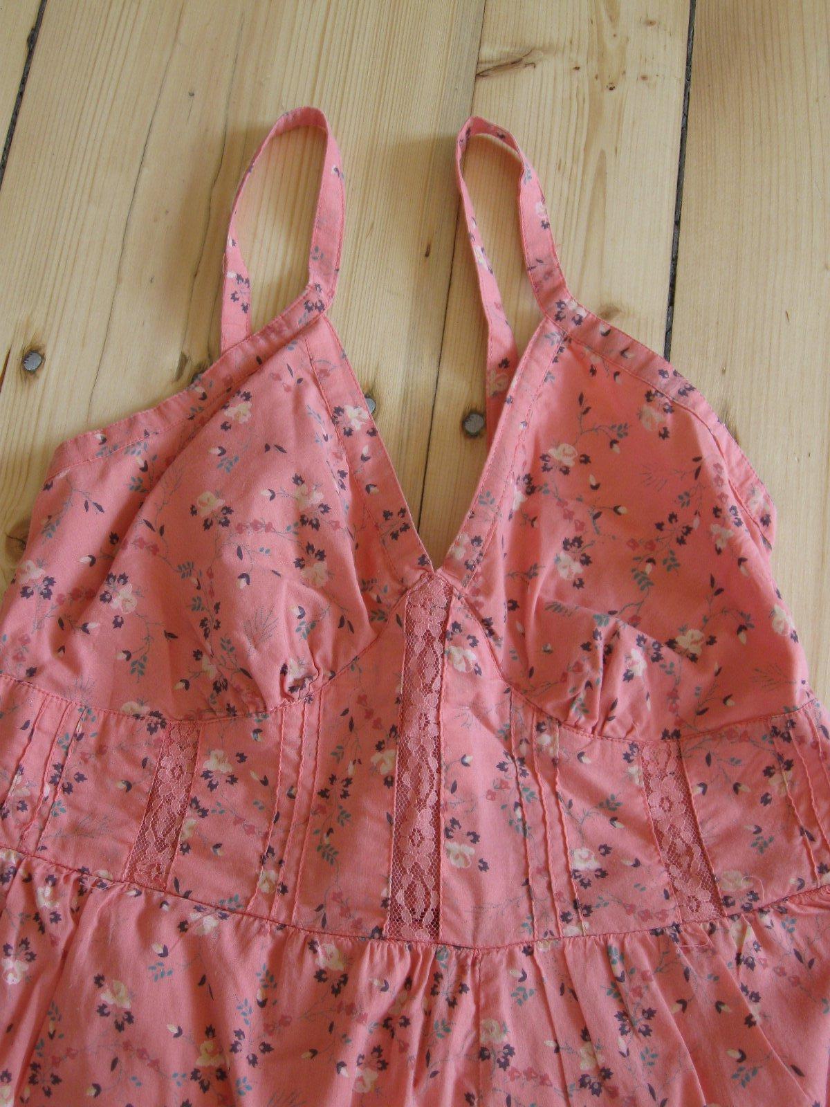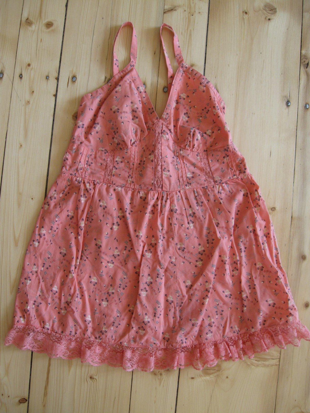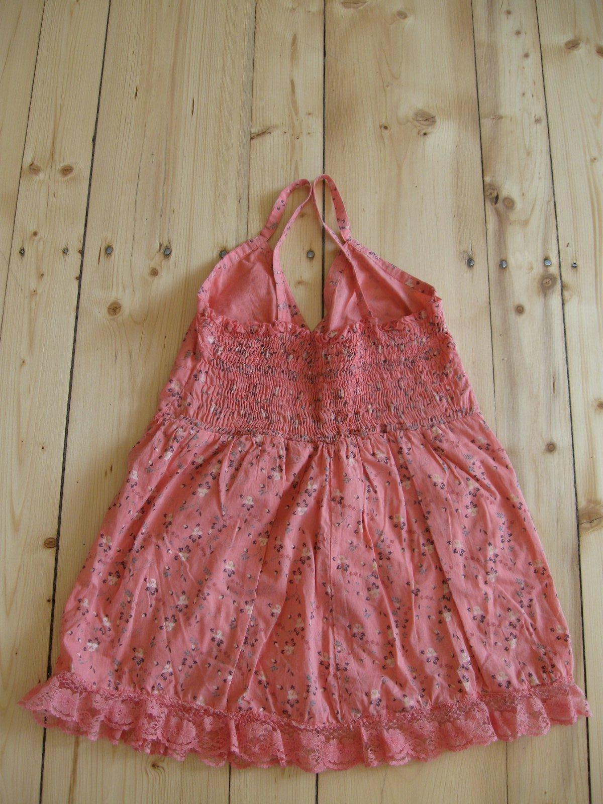 Krásna ružovolososová tunika na ramienka. Tunika má väčší výstrih,na spodu volániky. Veľkosť nie je udaná, ale sedí tak na M/možno aj L. Celková dĺžka od ramienok je 71cm a šírka meraná pod prsiami 37cm.