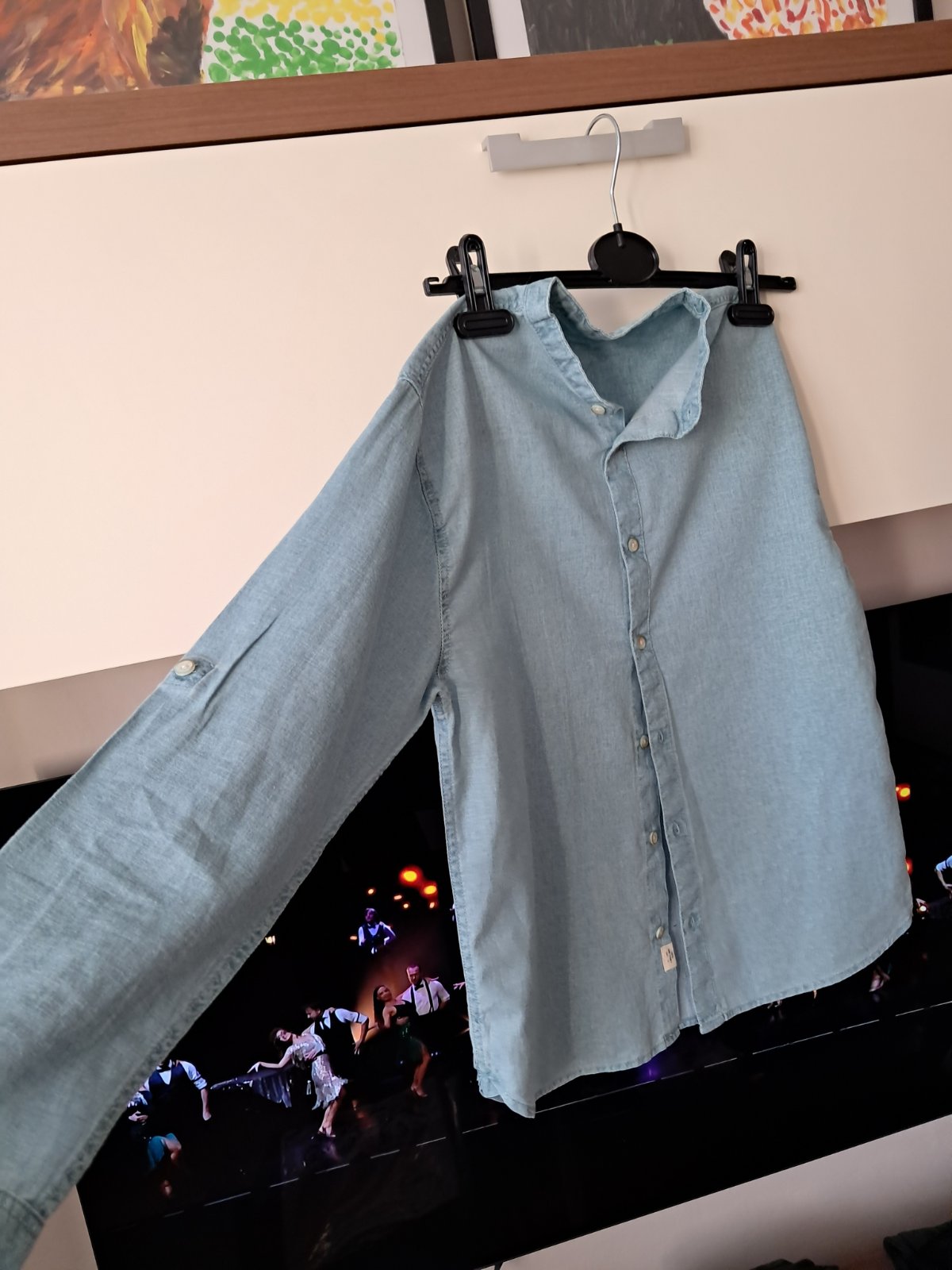 Modrotyrkysova kosela lanova. S rukavmi ktore mozete zrolovat. V top stave. Super na leto.