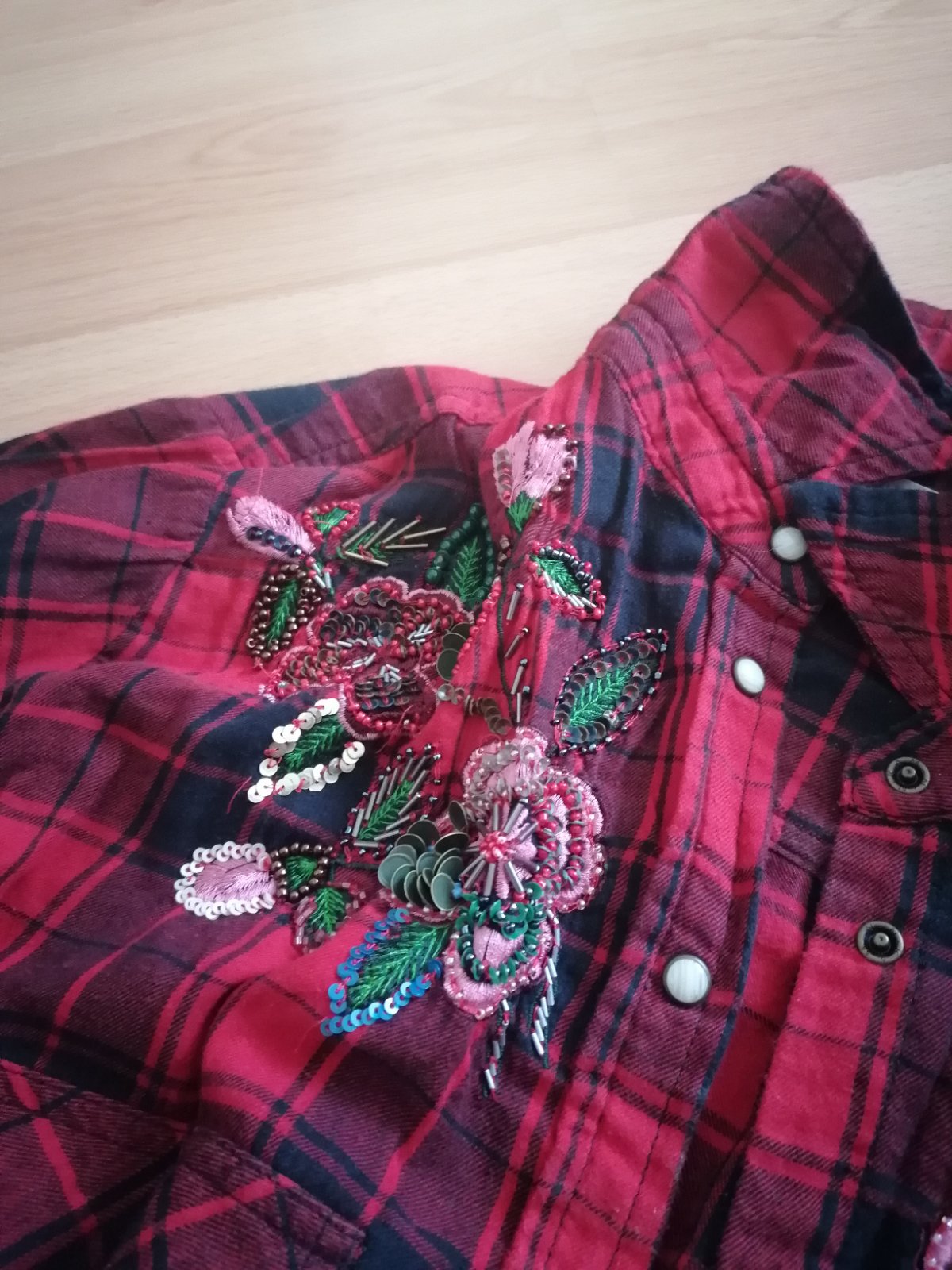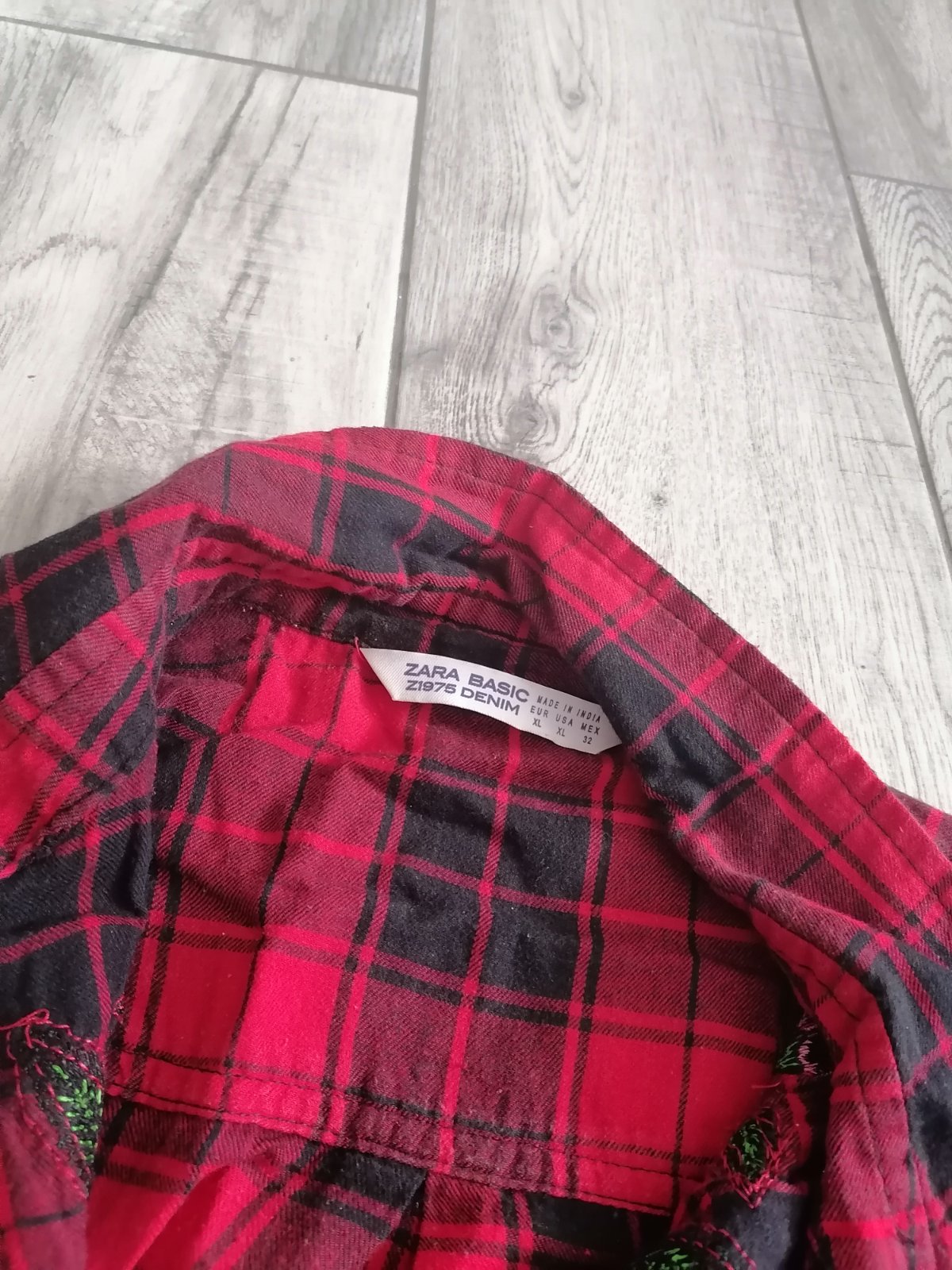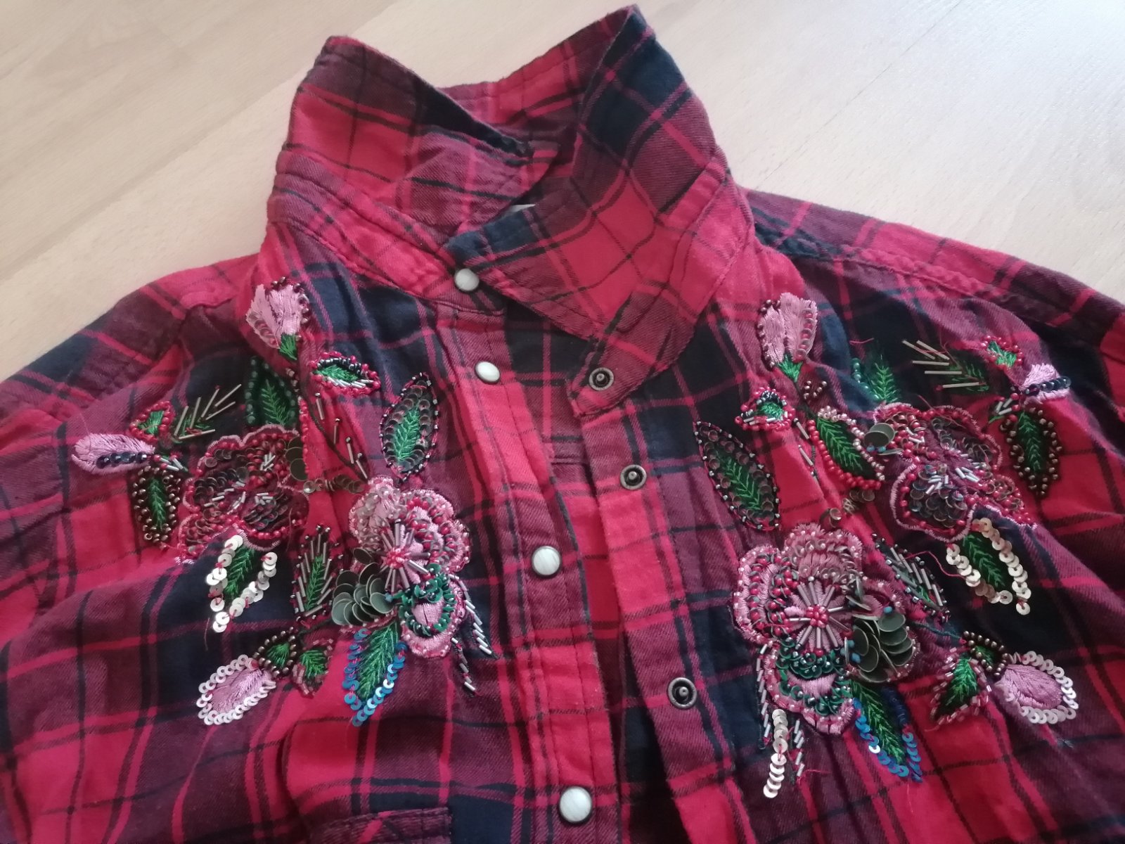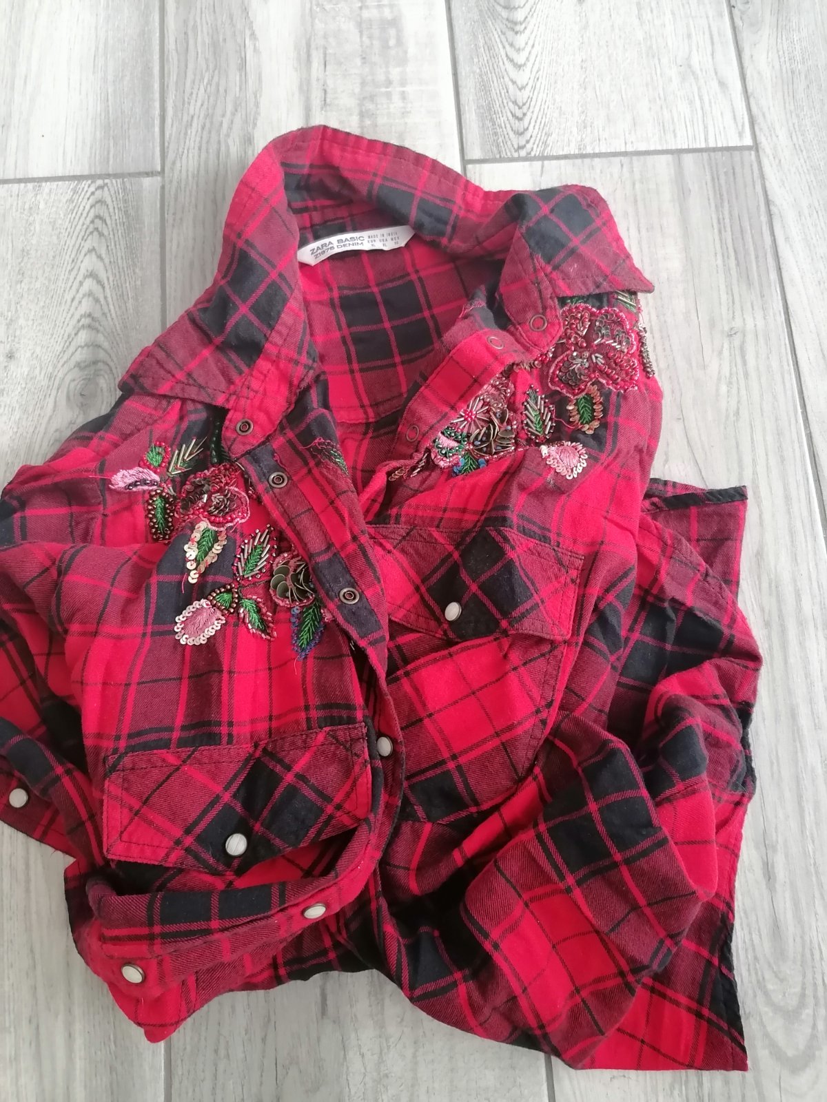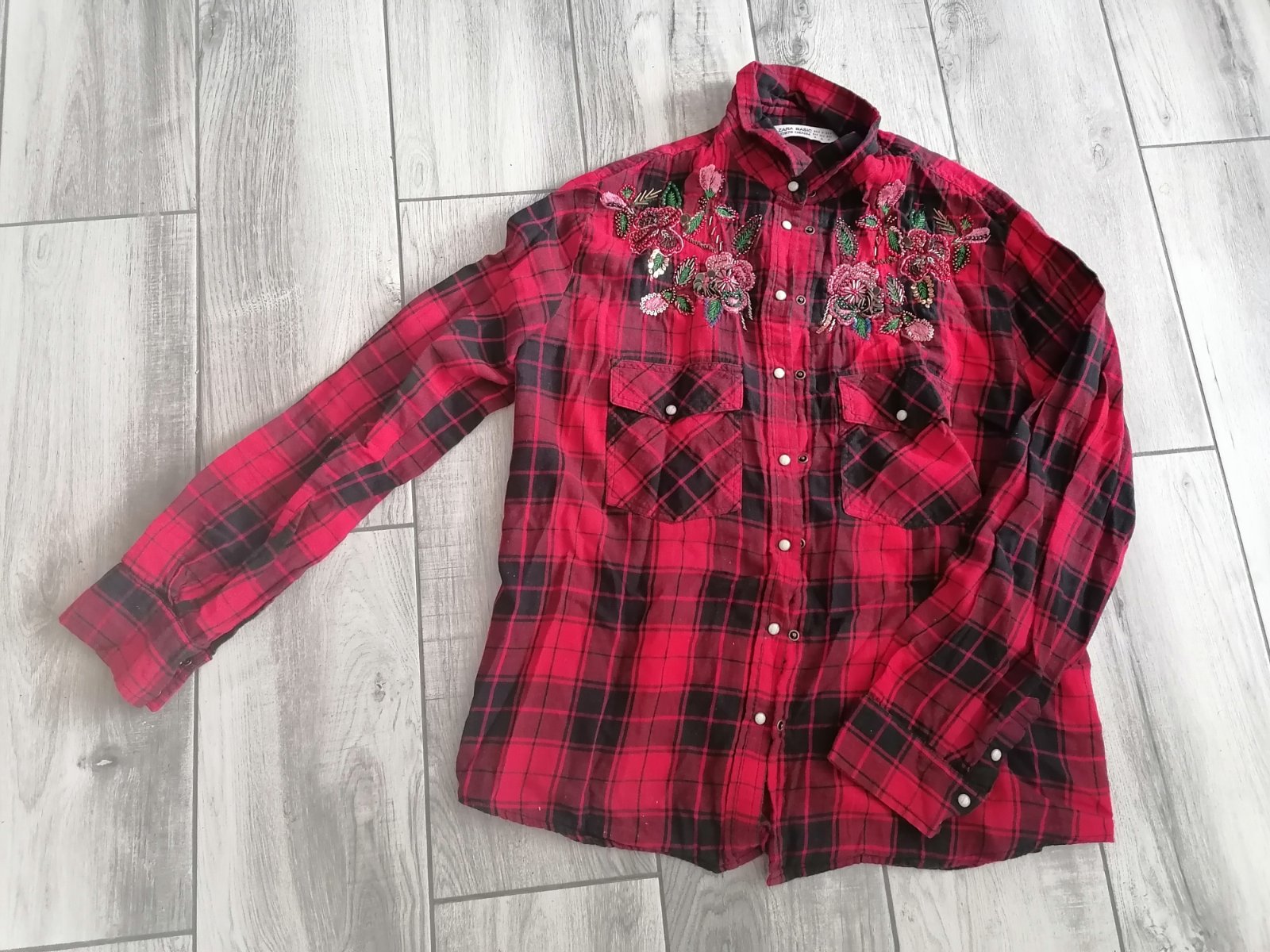 Červená károvaná košeľa s výšivkou - Zara L/XL