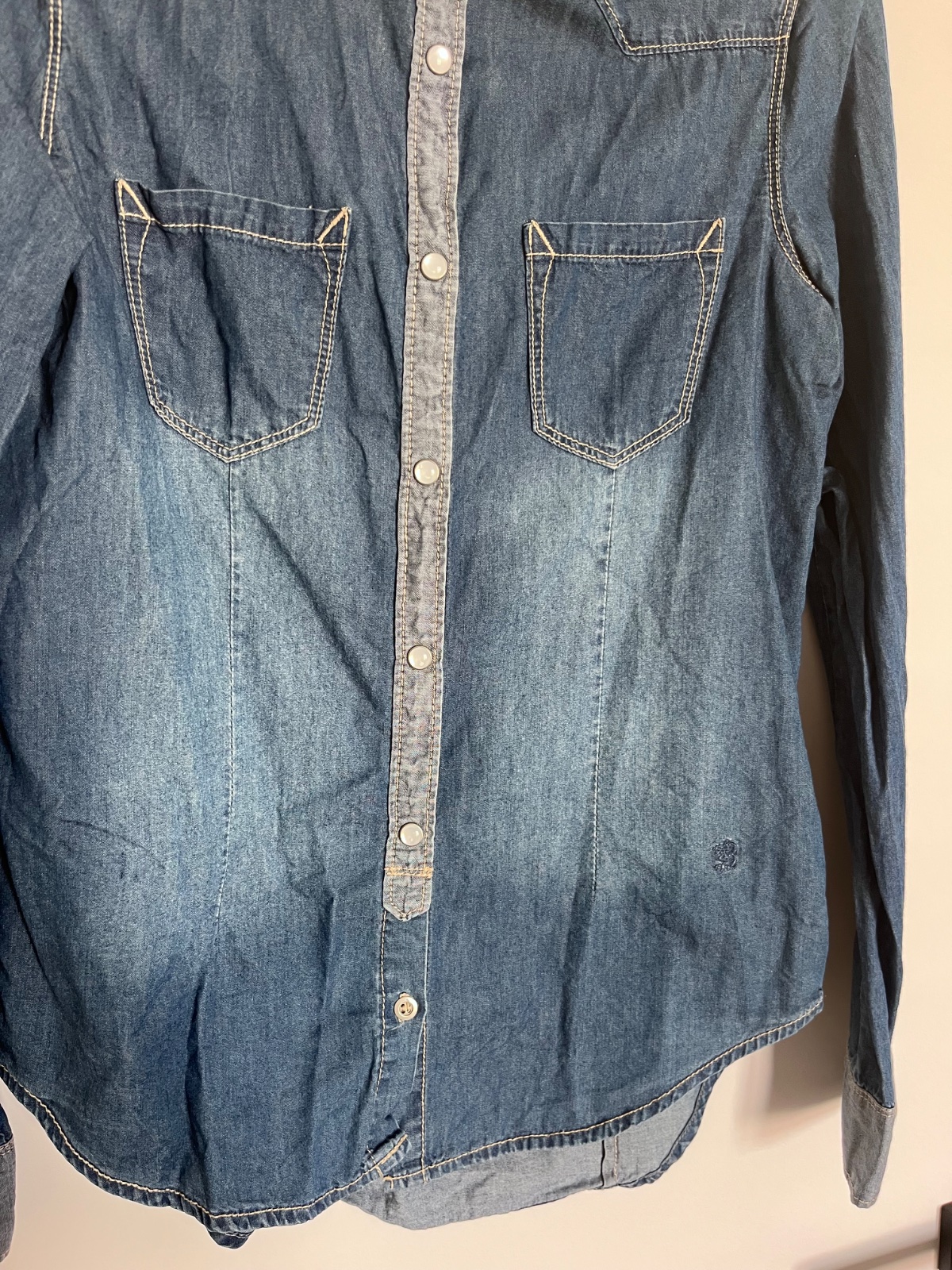 Predám raz oblečenú velmi peknú riflovu košeľu značky Denim, pôvodná cena 25€ Rozmery: Dlzka 62cm, sirka cez prsia 2x45cm, rukav od ramena 60cm.