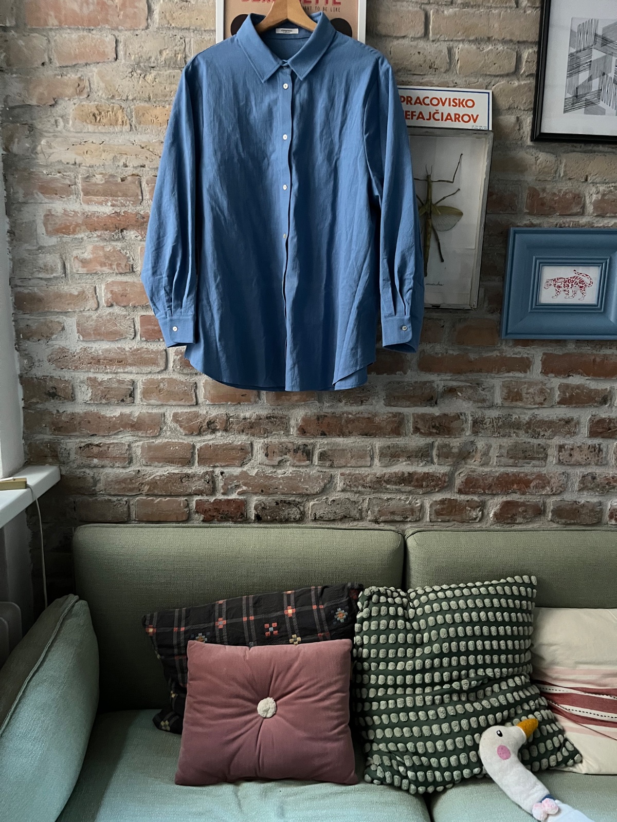 Dámska blúzková košeľa Blue Sky s dlhým rukávom. Blúzkový top je ideálny na jar alebo leto. Materiál: polyester, šifón Farba: modrá Veľkosti: XS/S, S/M Rozmery. XS/S: prsia: 86cm, pás: 74cm, celk...