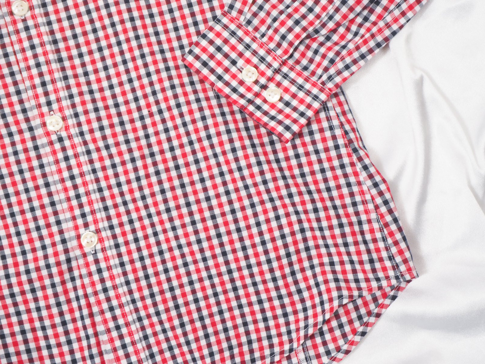 Kvalitná pánska košeľa, bielej farby s modrým a červeným káro pásikom, materiál 100% bavlna, super stav.