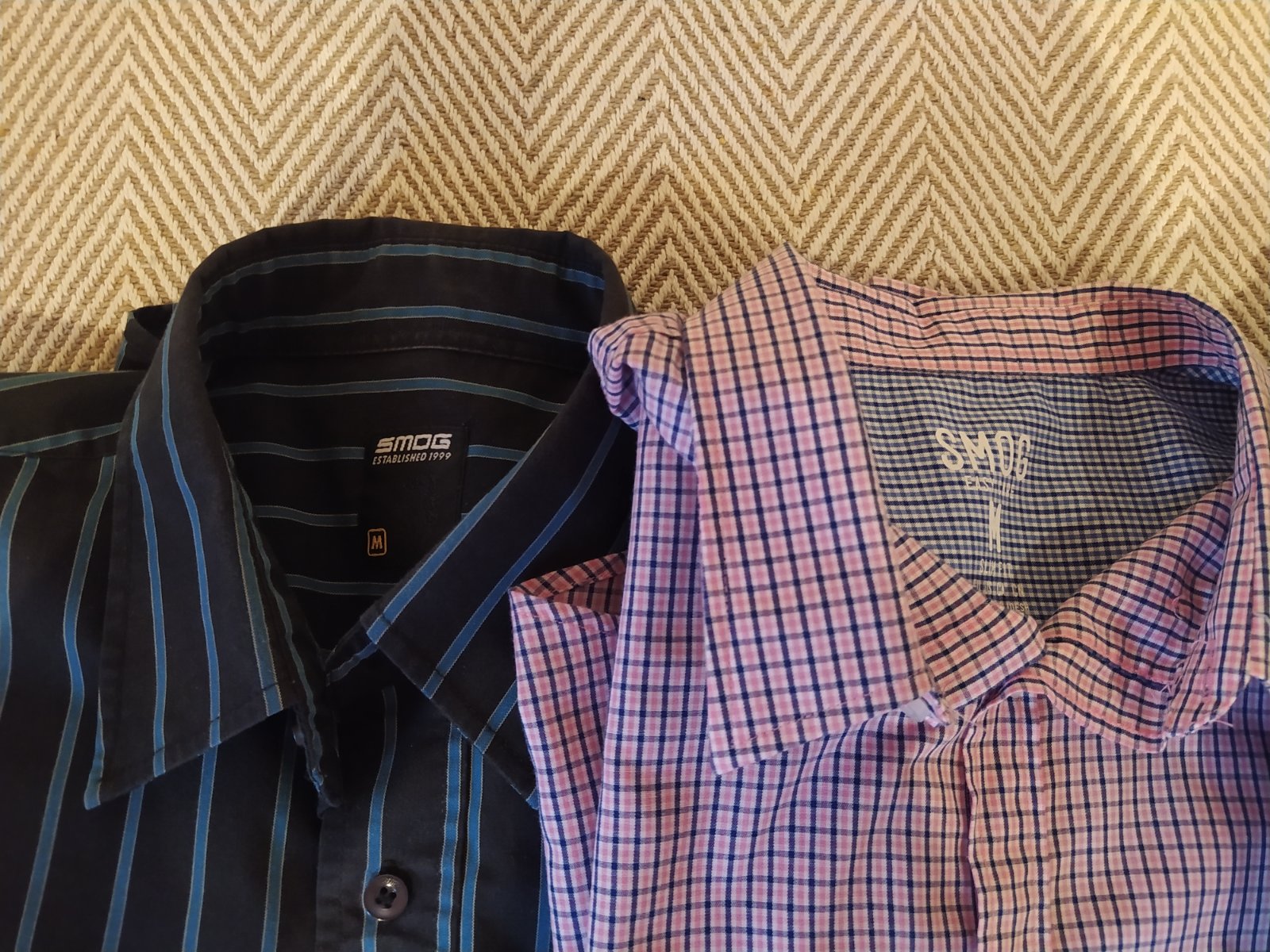 Pekné pánske košele pár krát oblečené,môjmu mužovi malé. Značka Smog. Cena za ks.