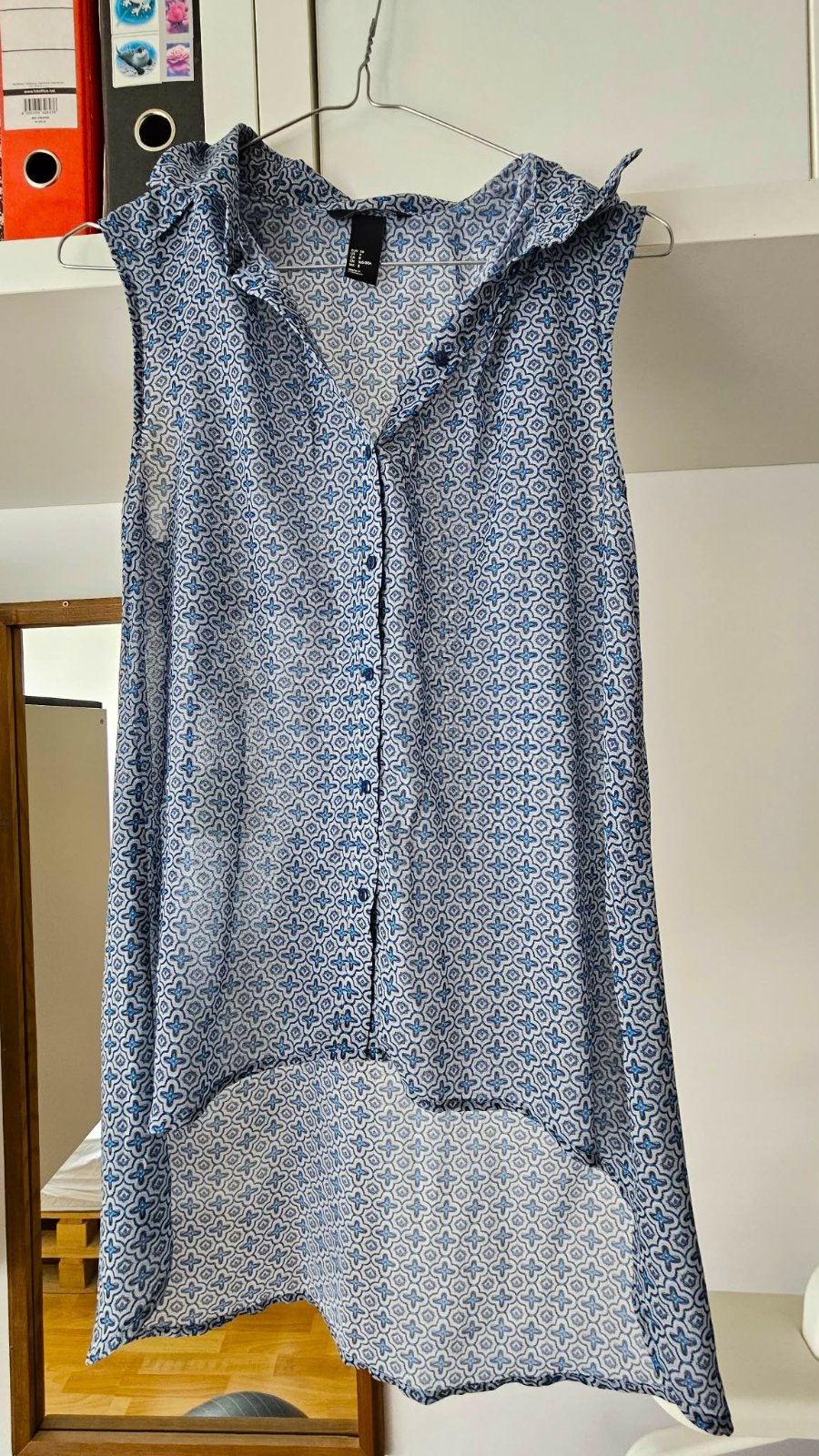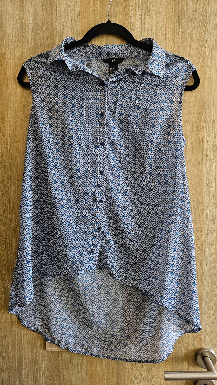 veľmi ľahká, vzdušná letná blúzka značky H&M v modro-bielom geometrickom vzore.