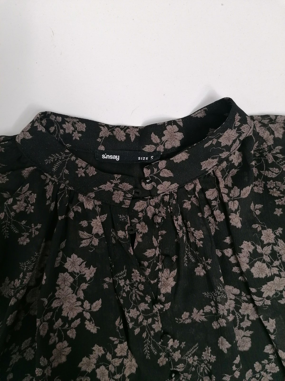 Veľkosť S, zn. Sinsay, ľahunká predĺžená blúzka so zlatými gombíkmi možnosť nosenia voľne alebo zviazane, rukáv sa dá nosiť dlhý alebo trištvrťový