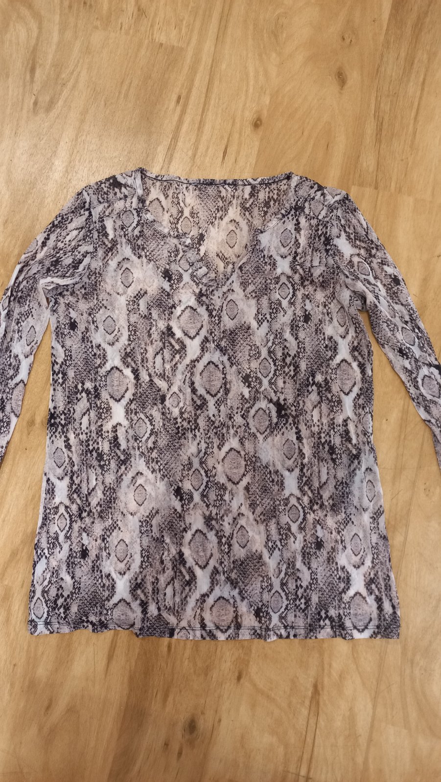 Pekná blúzka bez zapínania. Hadí vzor. Jemnučká, ĺahká, rovný strih. Veľkosť na štítku 40-42, Rozmer 50 x 67. ZN: TAIFUN
