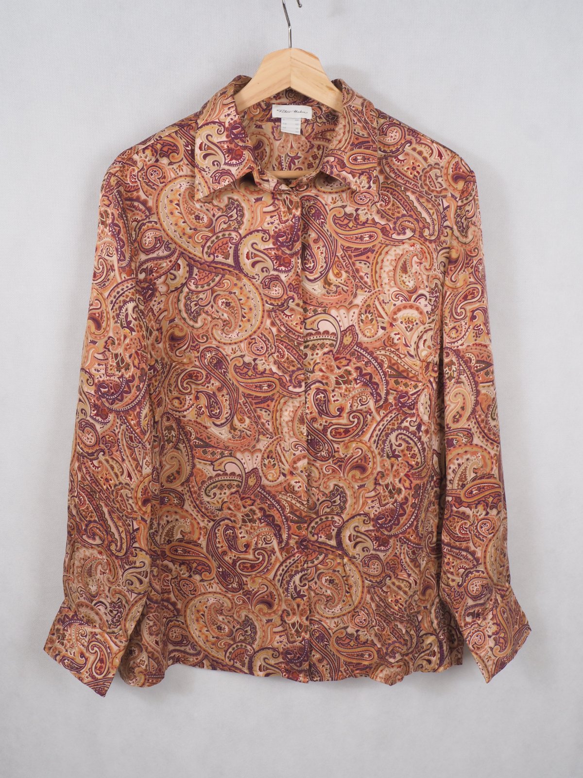 Luxusná hodvábna blúzka, zapínaie na gombíky, staroružovej farby, s krásnym vzorom, materiál 100% hodváb, super stav.