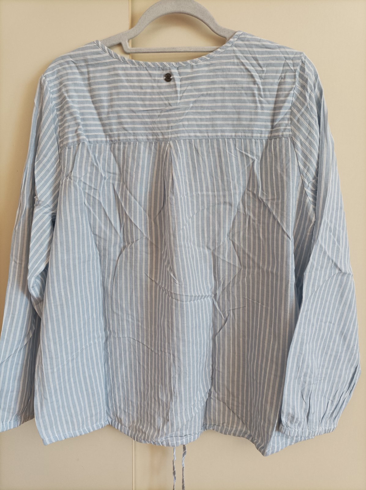 Ľahučká bavlnená blúzka,nie elastická. Veľmi príjemná na leto. Možno dvakrát oblečená.Prepáčte nemám čas žehliť. Dole sa dá stiahnuť šnúrkou.