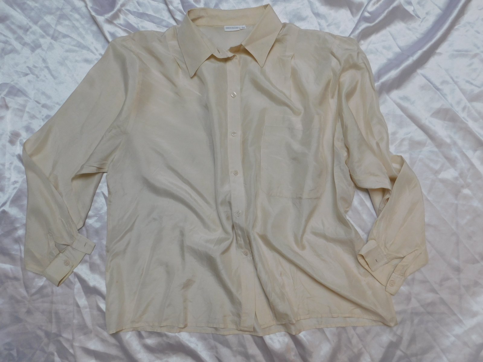 Hodvabna košelova bluzka maslovej farby.100%hodvab.super stav. m