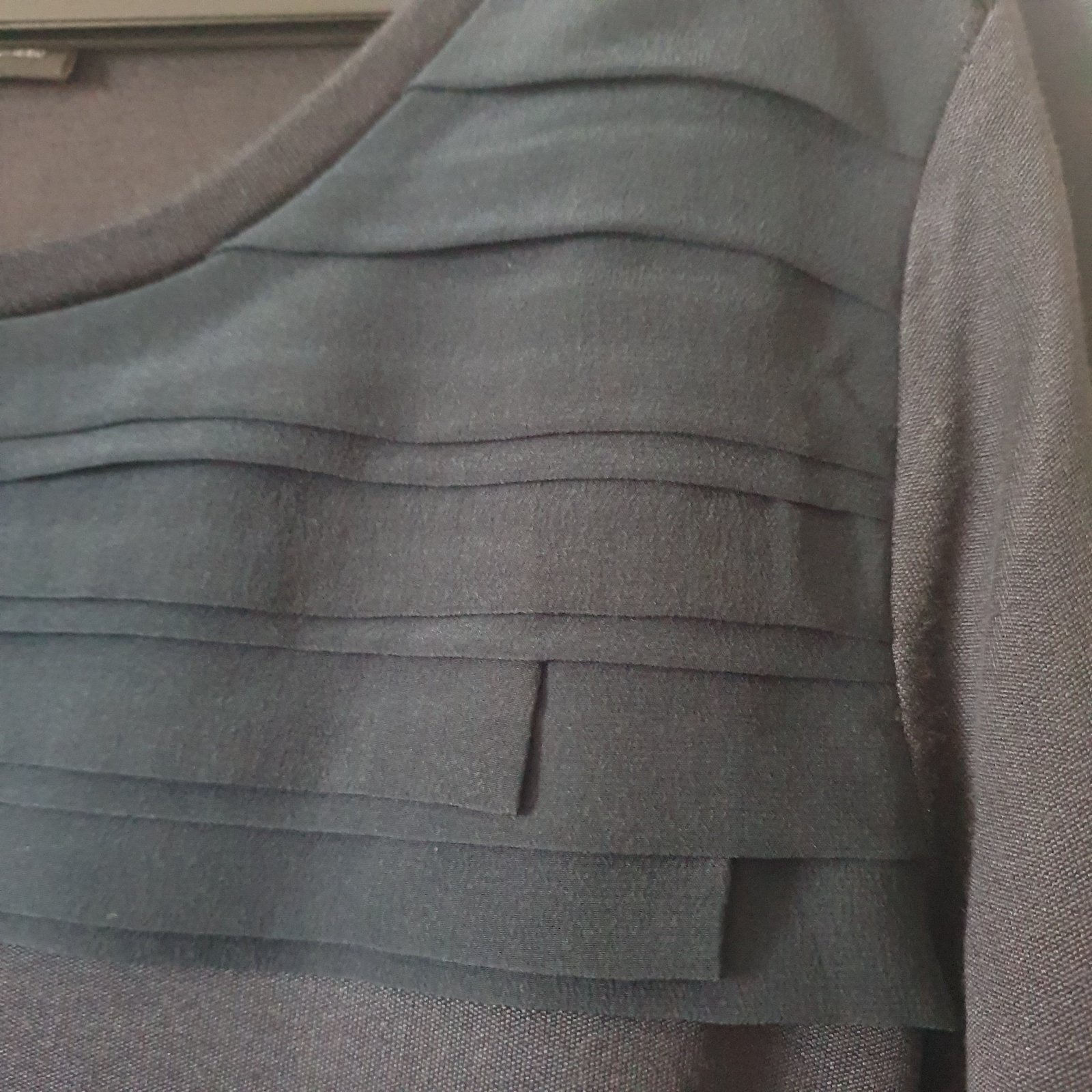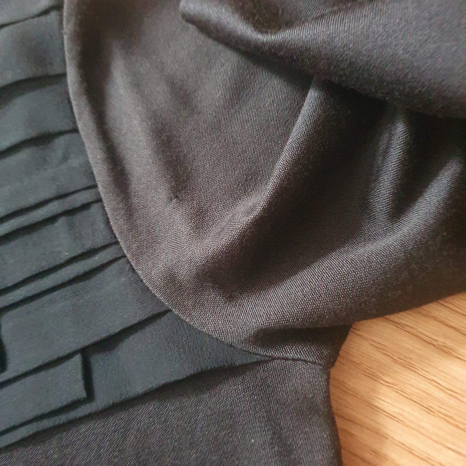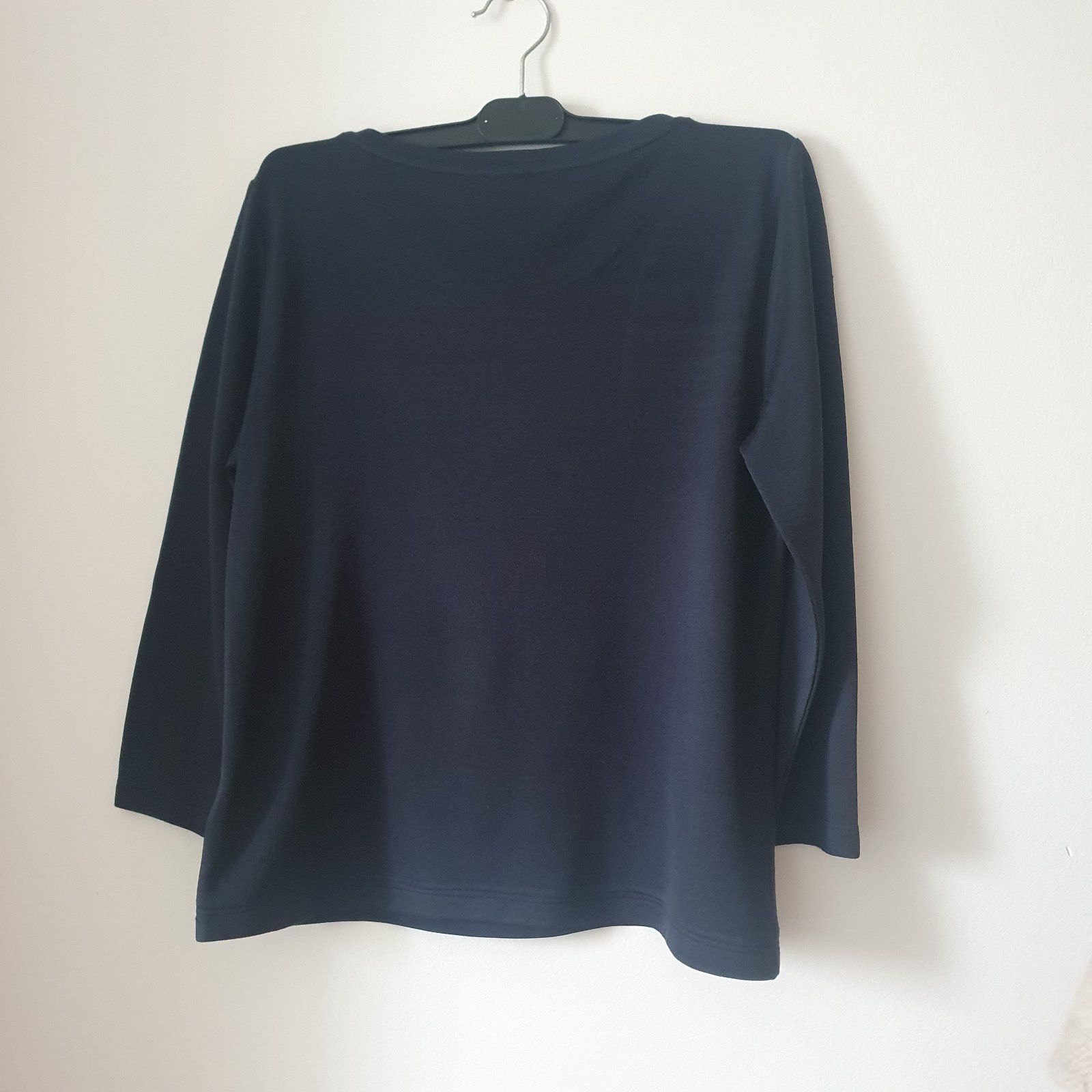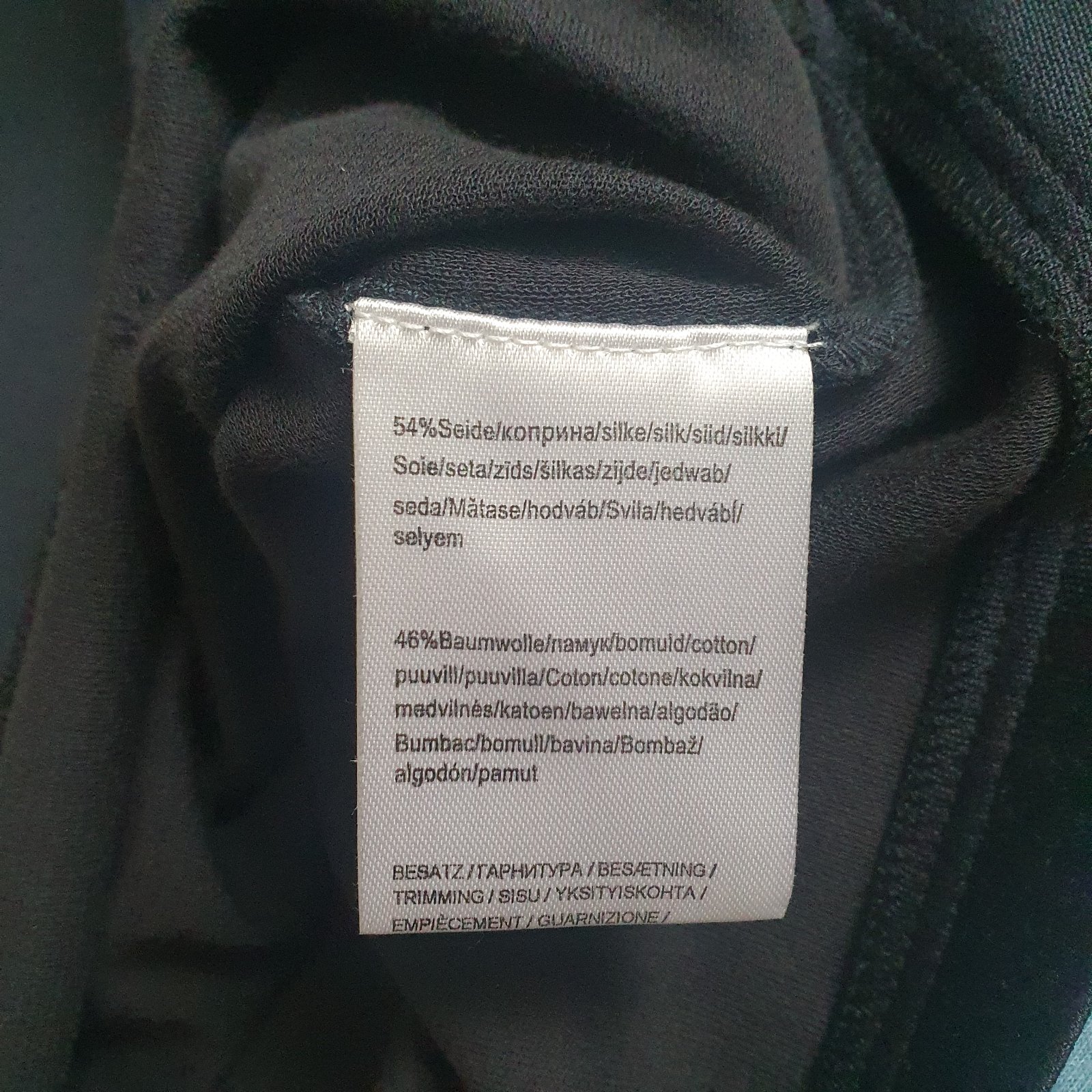 Zmes hodvábu a bavlny, aplikácia je čistý hodváb. Bez akýchkoľvek poškodení, ako nová. Použitá raz, je mi malá. Farba tmavomodrá, ten farebný rozdiel medzi hodvábom a zmesou nie je taký výrazný ako na fotke. Rozmery a zloženie na foto, cena je bez pošty.