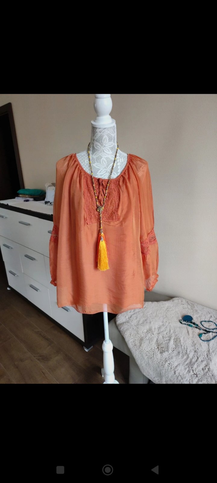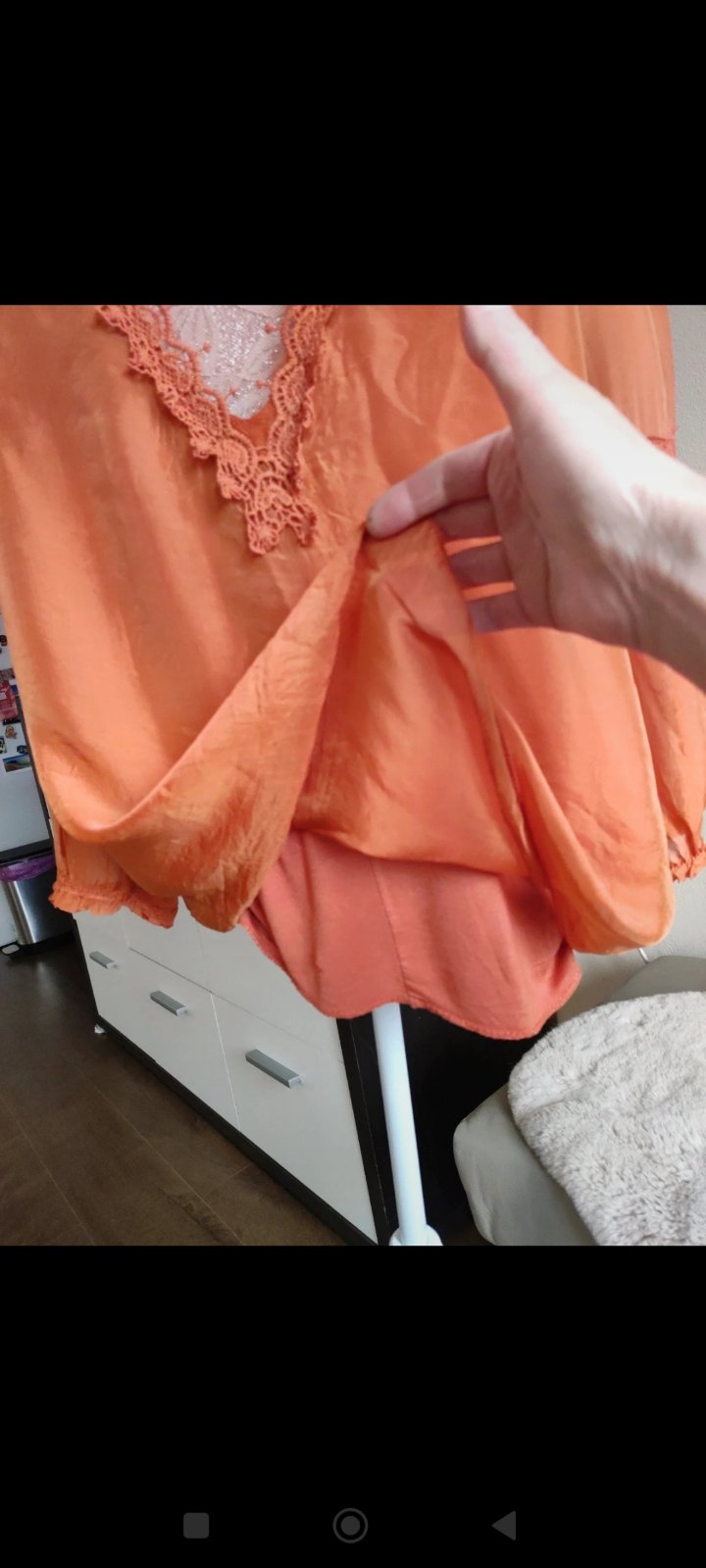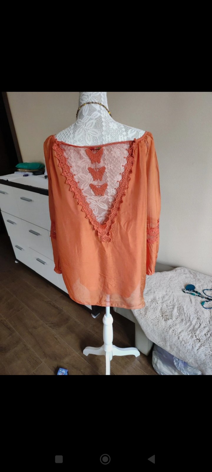 Oblečená len par krat v super stave, mega oversized dámska košeľa pokojne aj na väčšiu veľkosť. Farba tehlova, spp 70cmx2 a dĺžka 80cm
