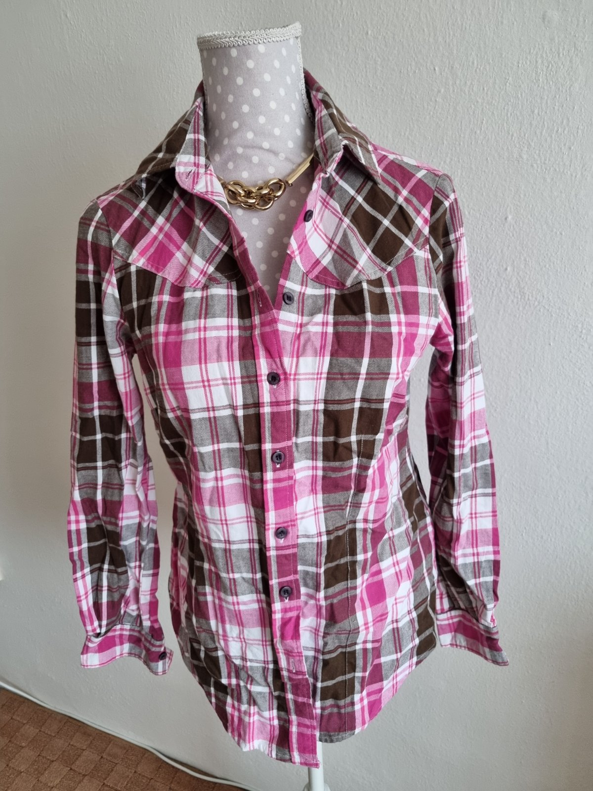 hrubsia bavlna..ruzovo hneda..pise S sedi na 38..dlzka 67..prsia 47x2..rukav od krku 63..bez elastanu
