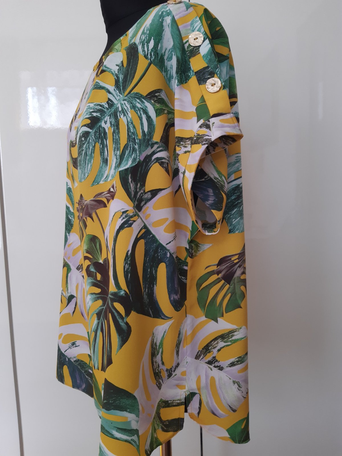 Pekná blúzka skoro nová, 1x oblečená, lebo nesadla veľkosť. DL. 73 cm, šírka cez prsia 61x2 cm. Materiál- 100% bavlna, súper stav, bez poškodenia a známok použitia.