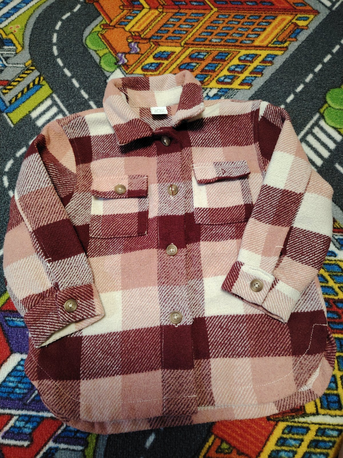 1x oblecena na prilezitost, marhulovo-ruzova so zlatymi bodkami, pekne vrstvene rukavy, bluzka podsita, velkost 98/104