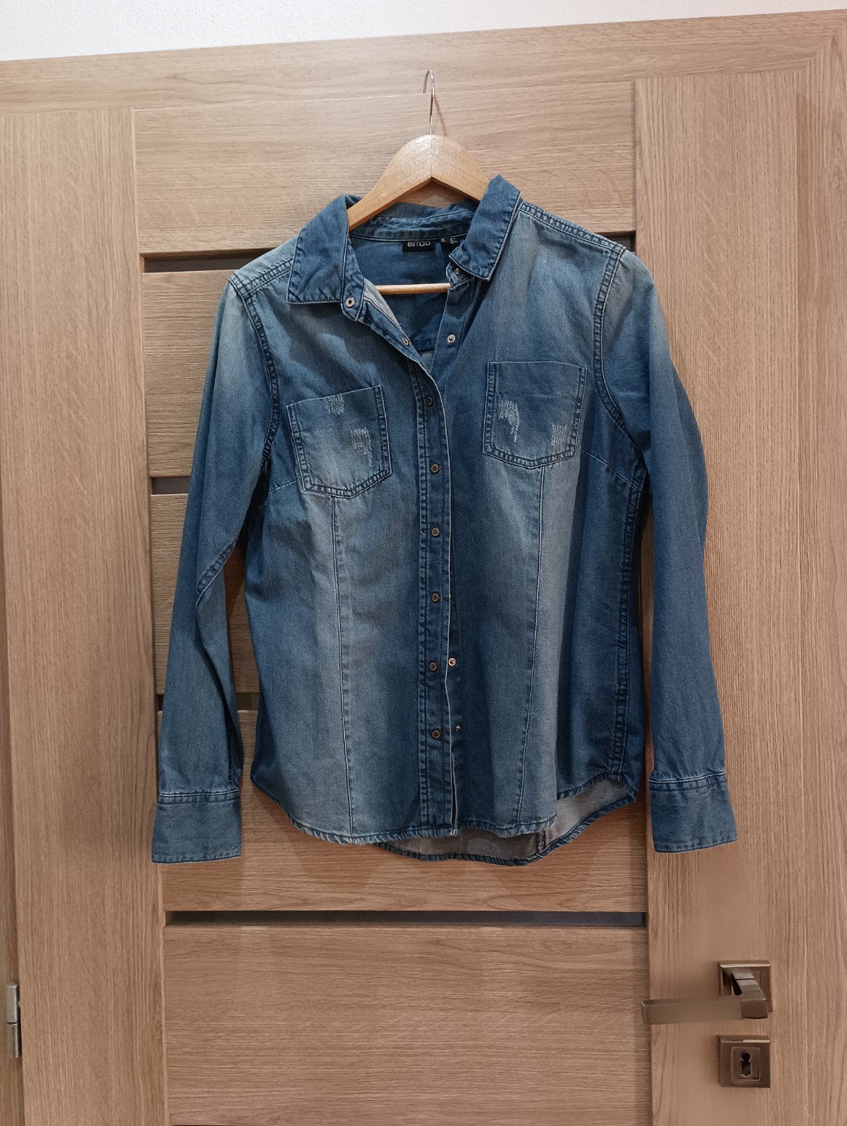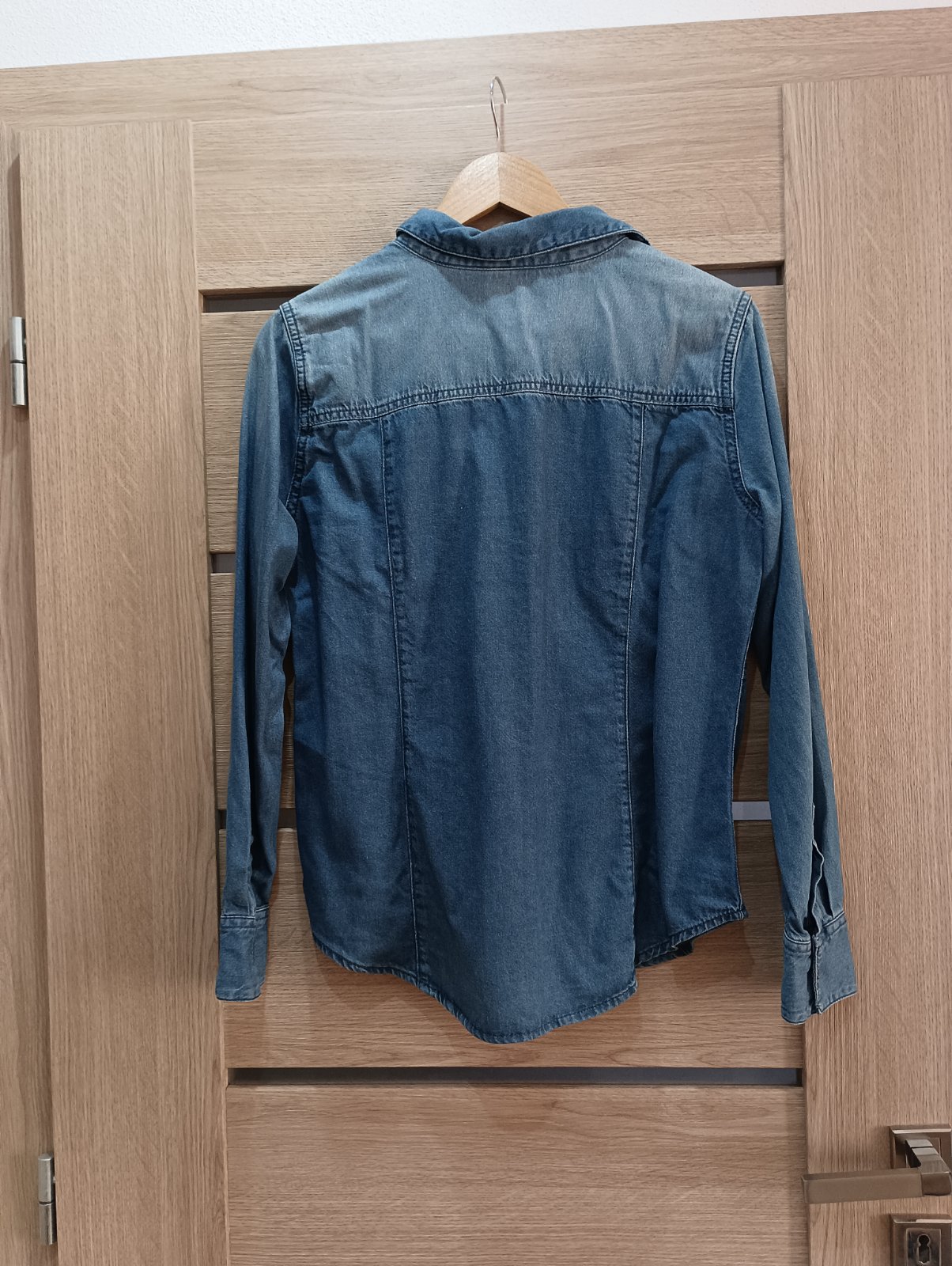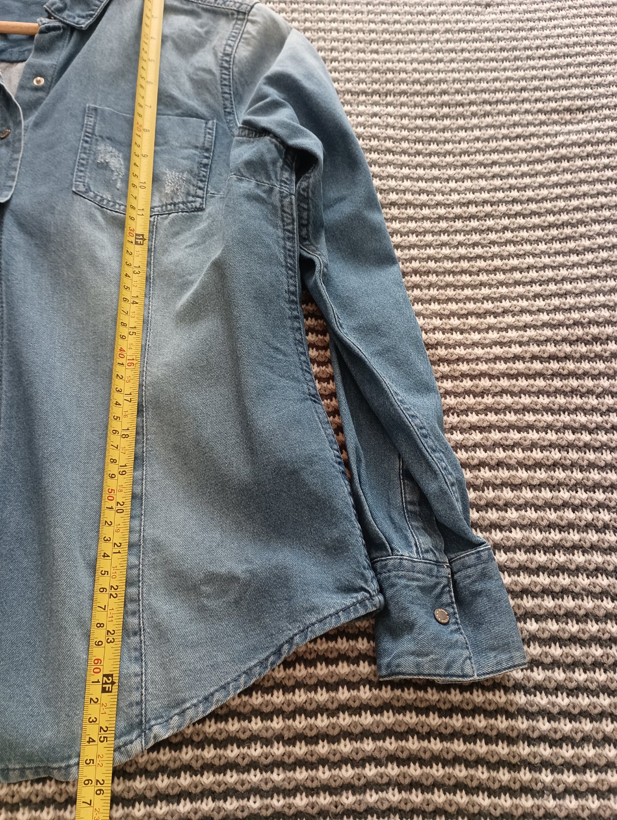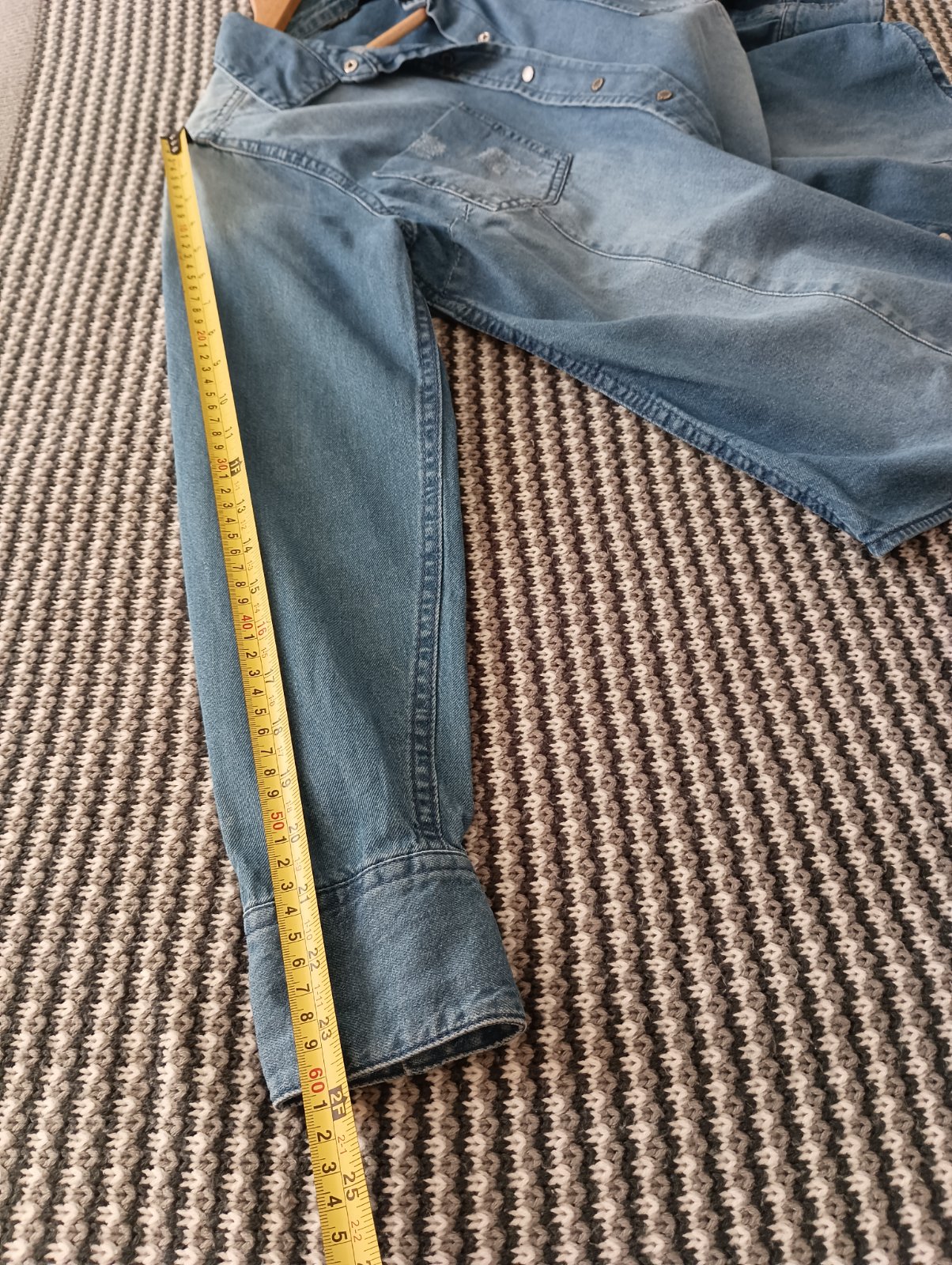 Predám riflovú košeľu raz oblečenú. Top stav. Rozmery odfotené. Farba ako na prvej fotke.