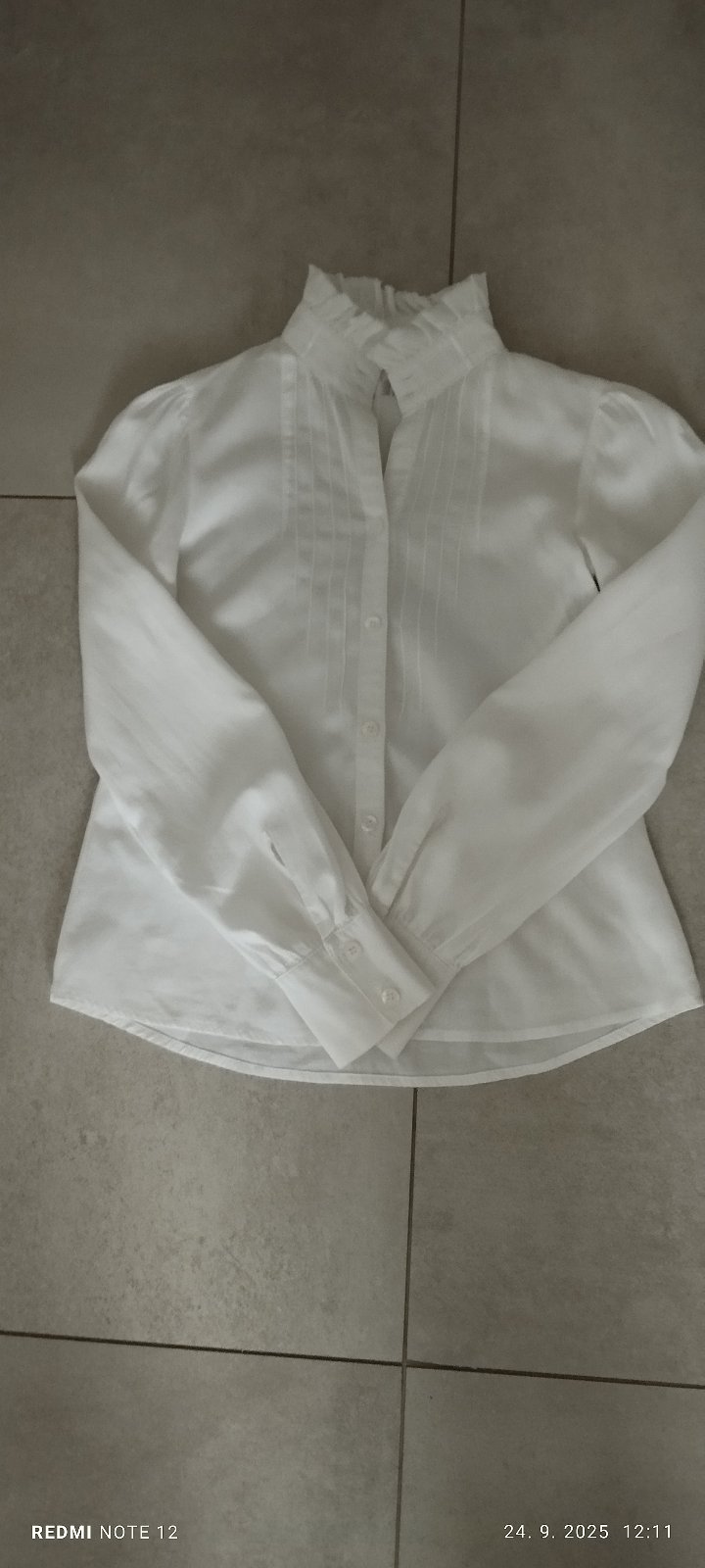 Elegantná blúzka známej značky pre 10 -12 r. dievča / udávam miery/ v top stave. Pri golieriku sú obojstranne dve dierky na stužky alebo koráliky. Dávali sme aj dvojfarevné stužky podľa sukienky, ale aj perličky. Na zadnej strane je logo značky. Určite odporúčam.