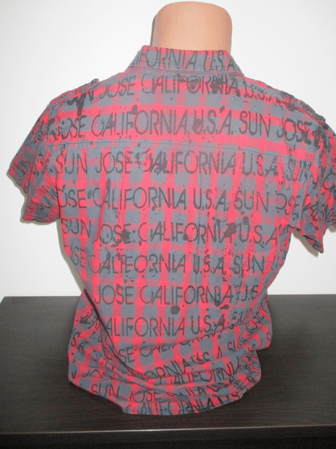 Čierno/červená kockovaná košeľa s krátkym rukávom, 100% bavlna, veľkosť M, obvod cez prsia-102 cm, dĺžka rukávov od pleca-17 cm, dĺžka košele-67 cm, slim fit.