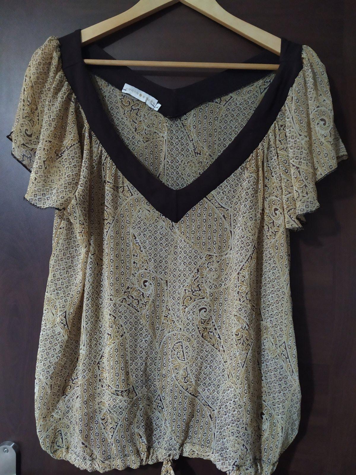 Dámska ležérna blúzka s krátkym rukávom, kvetovaná, hore na ramenách s elastickou gumičkou. Tenká. Elastická. Farba biela,svetlomodrá,tyrkysová, hnedá, tmavohnedá. Materiál:95%polyester 5%elastan....