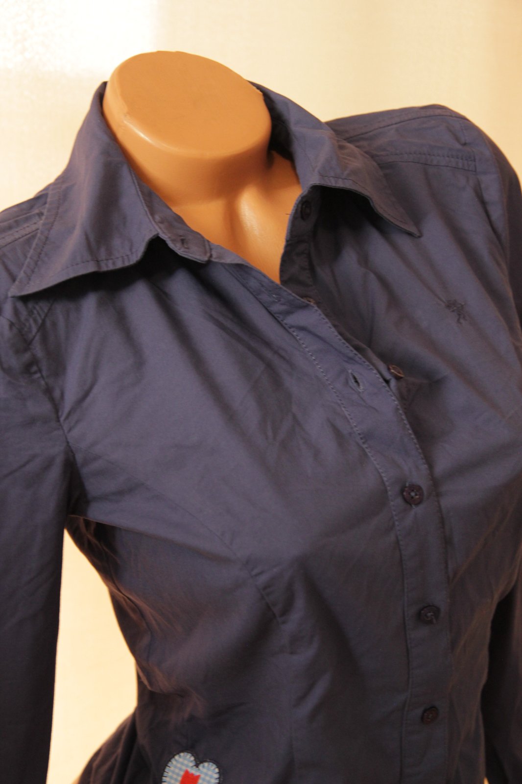 Modro fialová body košeľa, veľkosť XS, pekný stav akurát na boku bola mini dierka - je na nej záplata. Značka EDC.