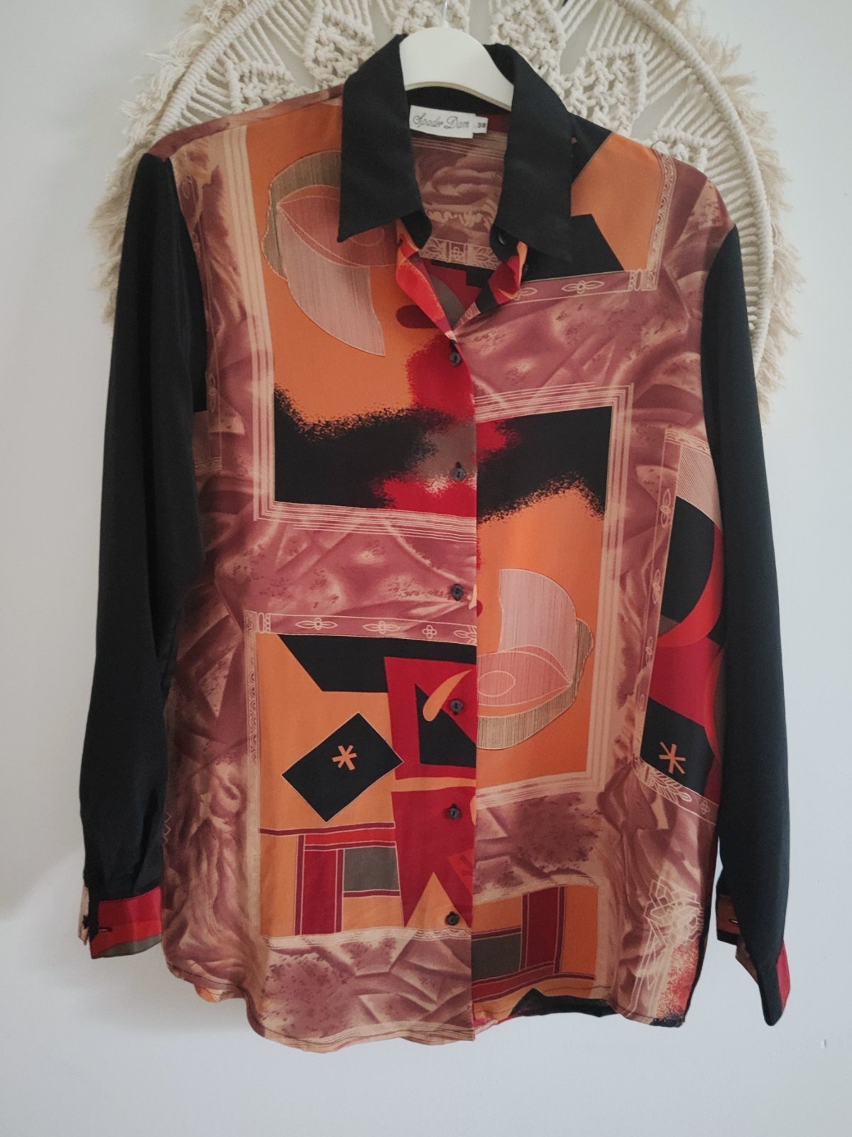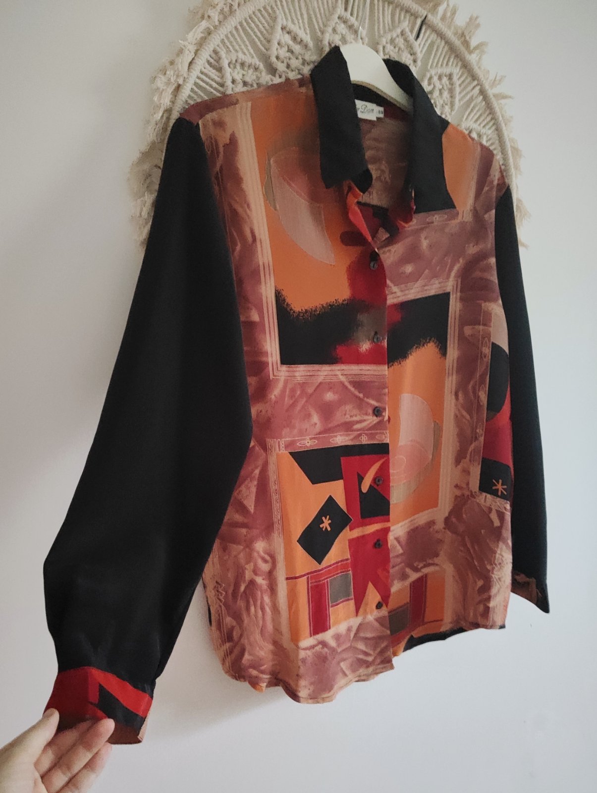 Dámska oversize blúzka, určite sadne na M a L (XL?), talianska značka, satén, vzorovaná