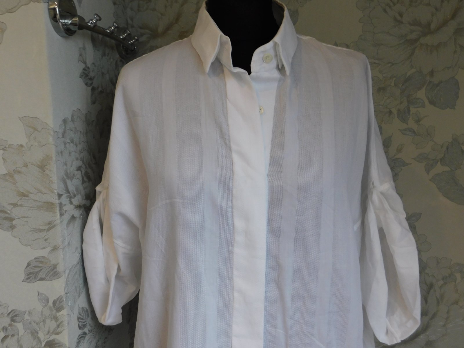 Lahucka letna bluzka, len oprana , mne mala v prsiach - predny diel podšity tenuckou latkou aby bola nepriehladna, krasna dierovana latka, rozmer prsia 57, pekne pdne aj na velkost L , XL, cena 12 ...