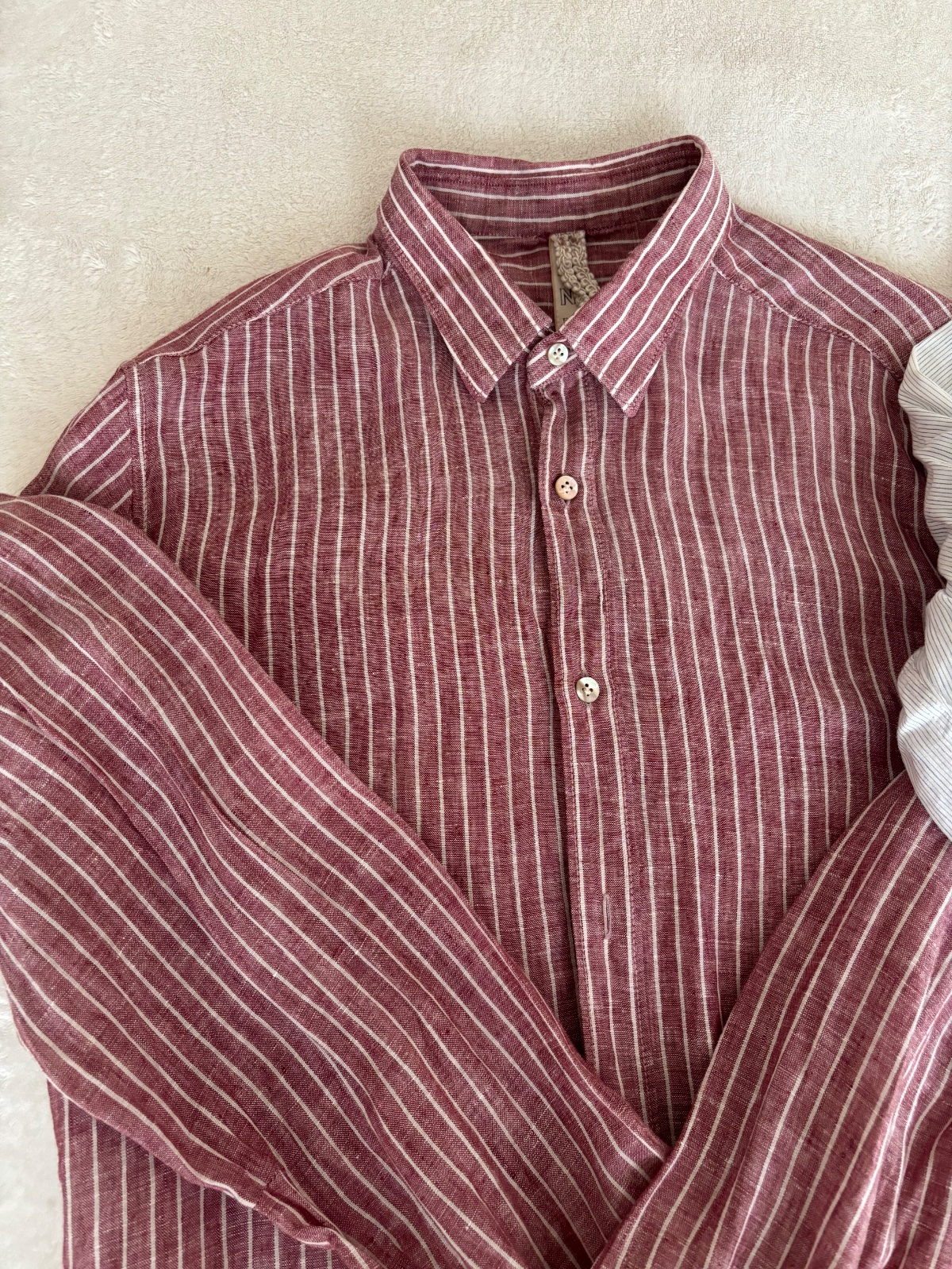 Dve ľanové košele, top stav. Bledomodrá Zara, červená z Talianska ( originál vyblednutá farba), sedia na M az L (skor menšie L). Sú slim fit. Predaj a cena spolu