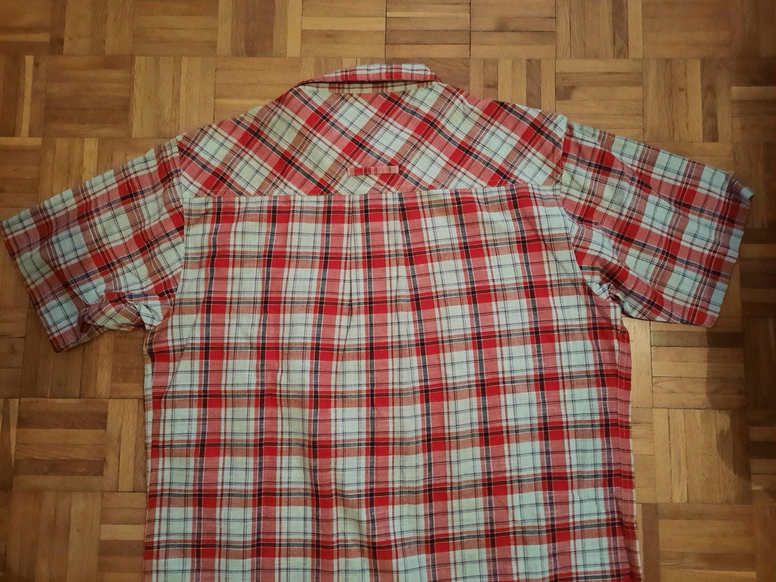 Pekná kockovaná bavlnená košeľa- výborný stav. Kvalitný materiál. Spodok mierne zaoblený, vpredu vačok.