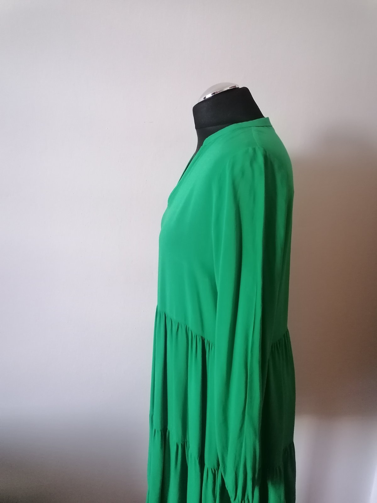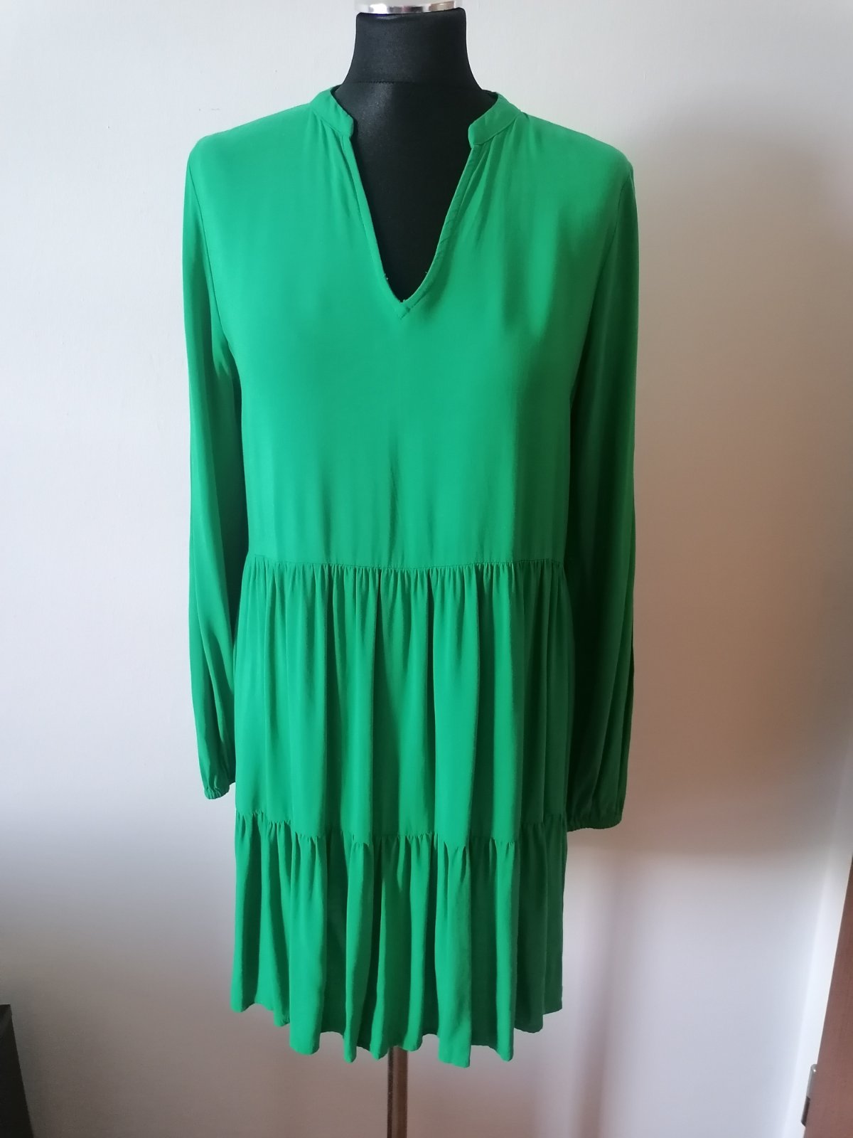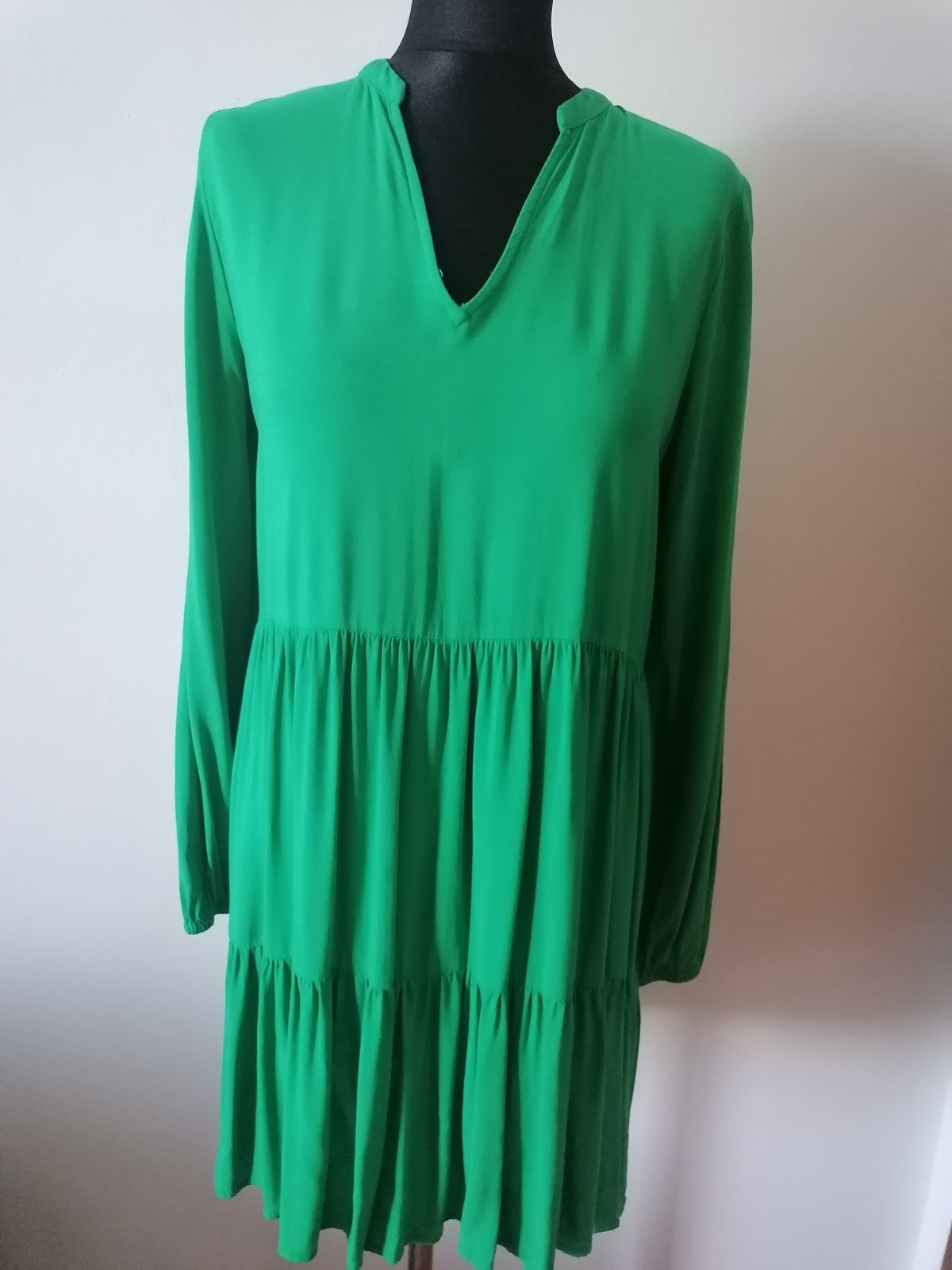Predám krásnu blúzku tmavozelenej farby (nepodarilo sa mi ju poriadne odfotiť) s dlhými rukávmi, ale dajú sa zrolovať na trojštvrťové. Veľkosť na lístku je S aké podľa mňa je to M alebo L taká over...