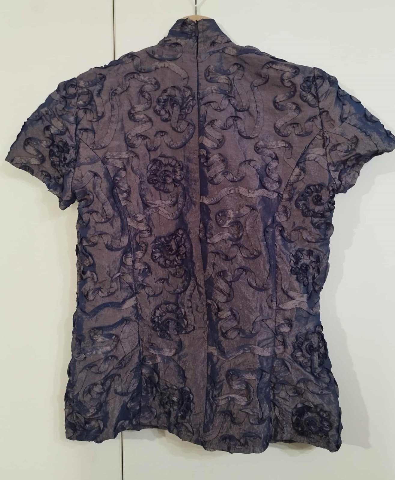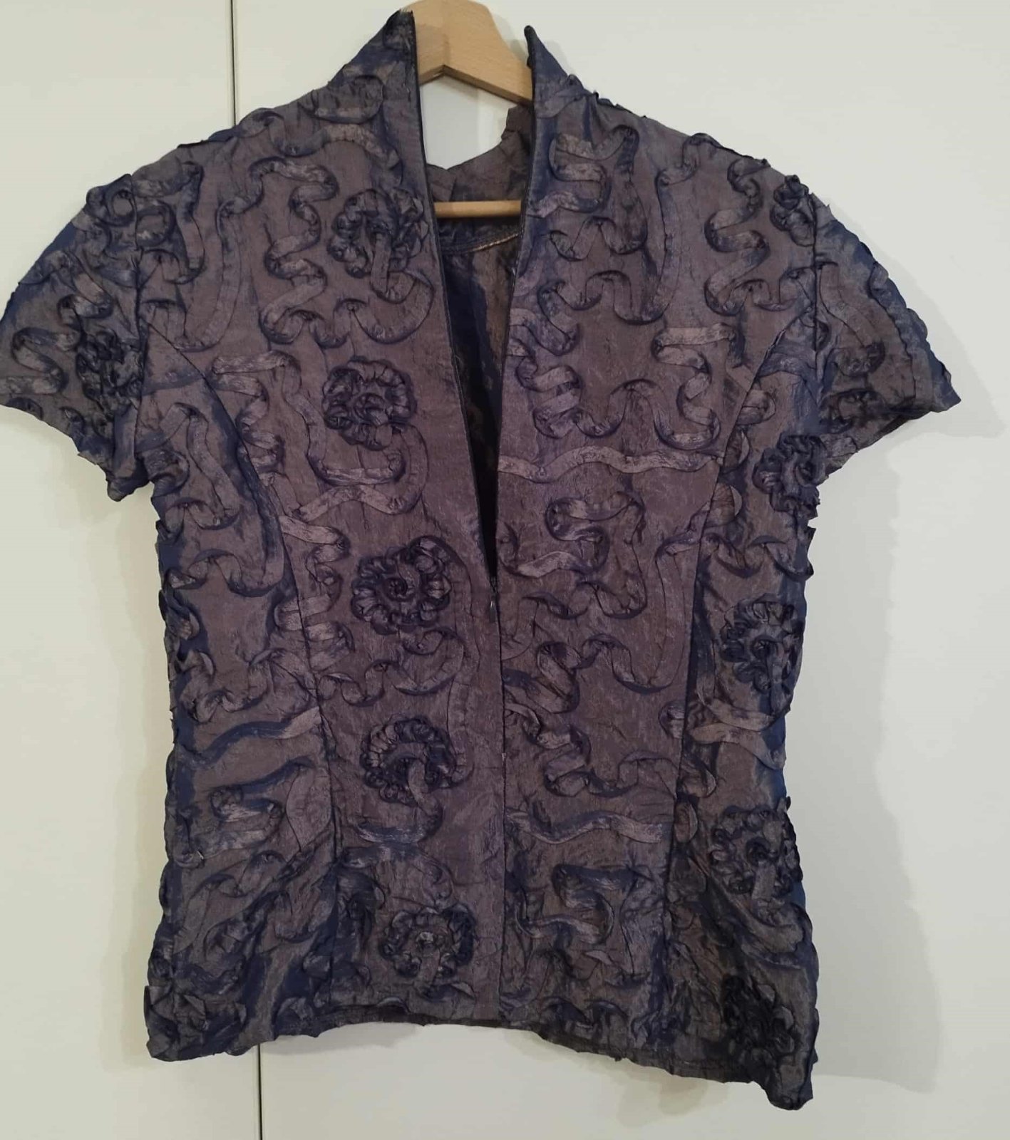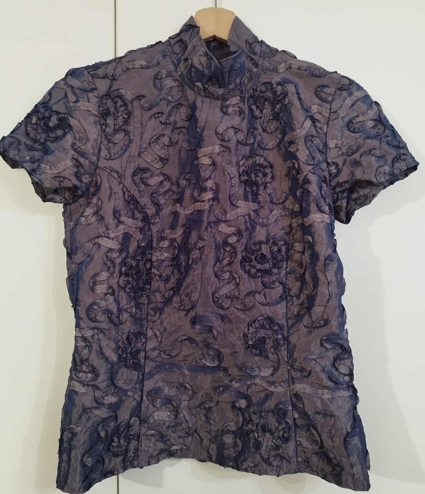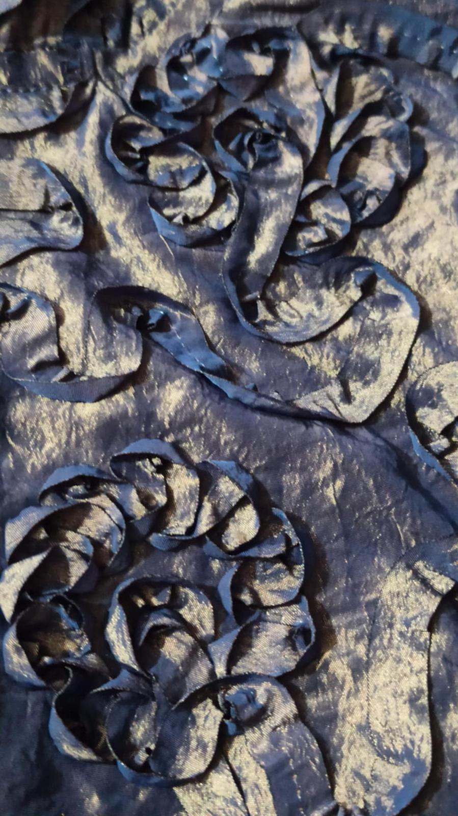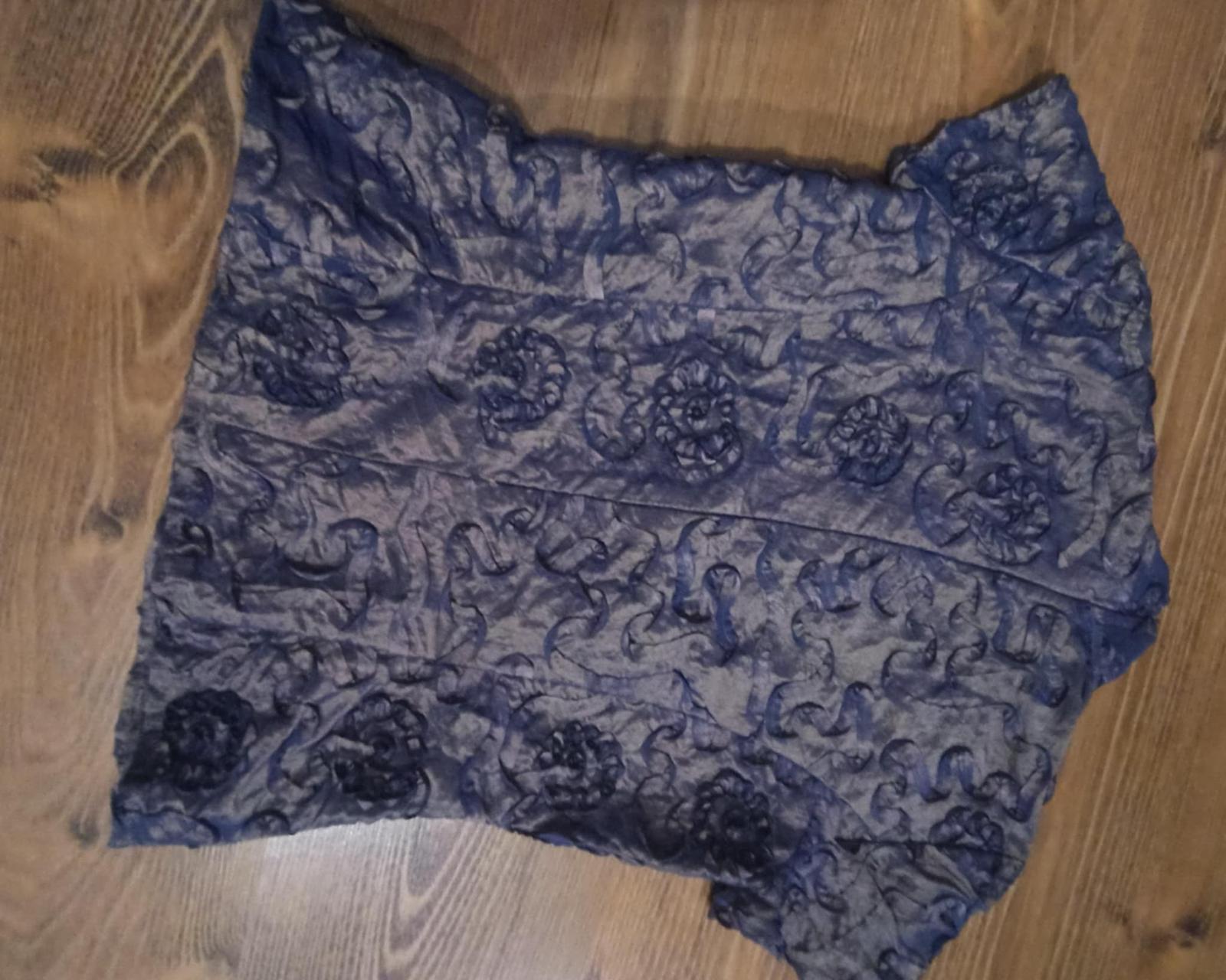 Blúzka je v krásnej kombinácii zlatej s modrou , zle sa však fotí, farba na svetle skresľuje. Inak je nádherná. Bola príležitostne raz oblečená.