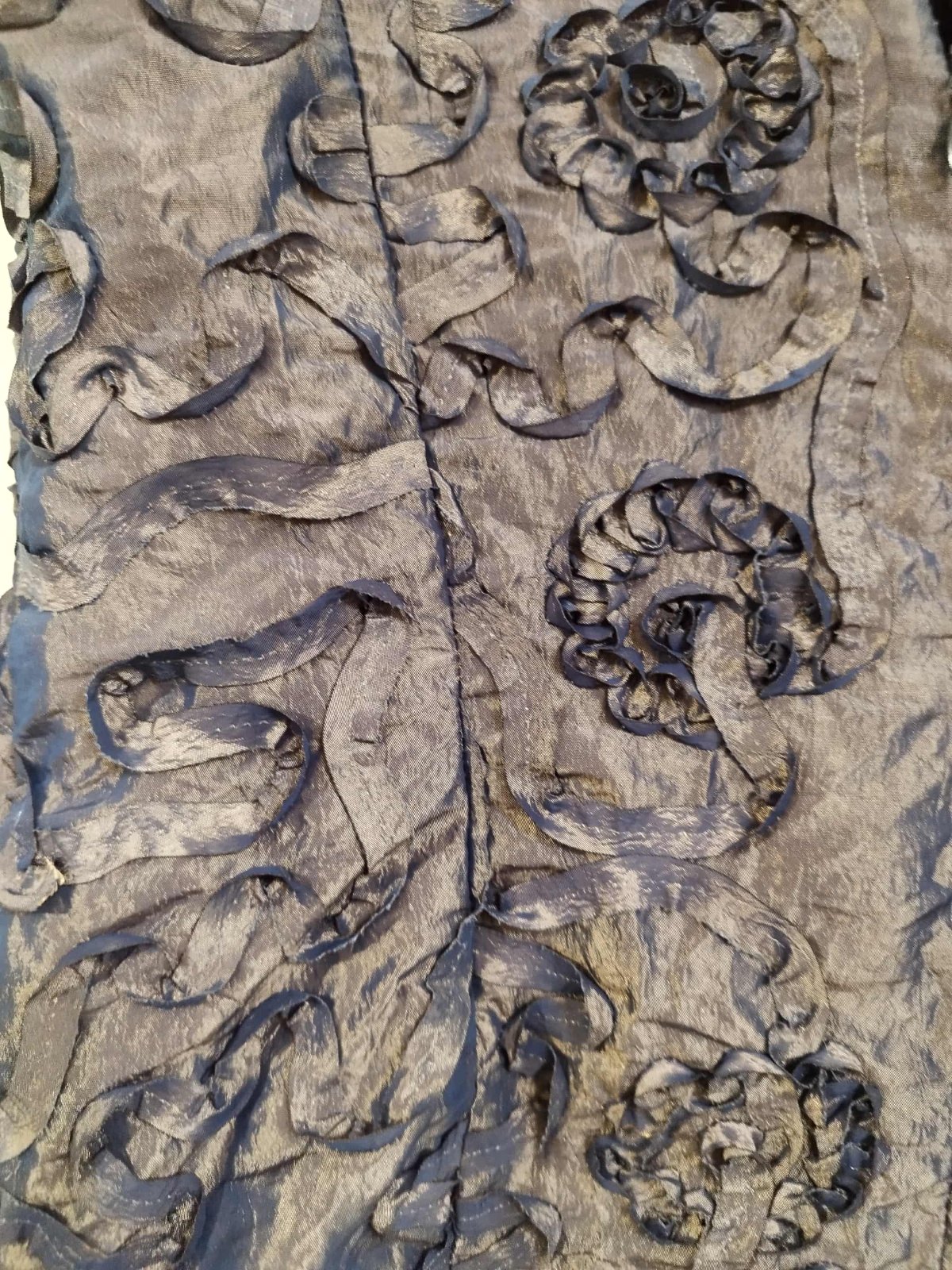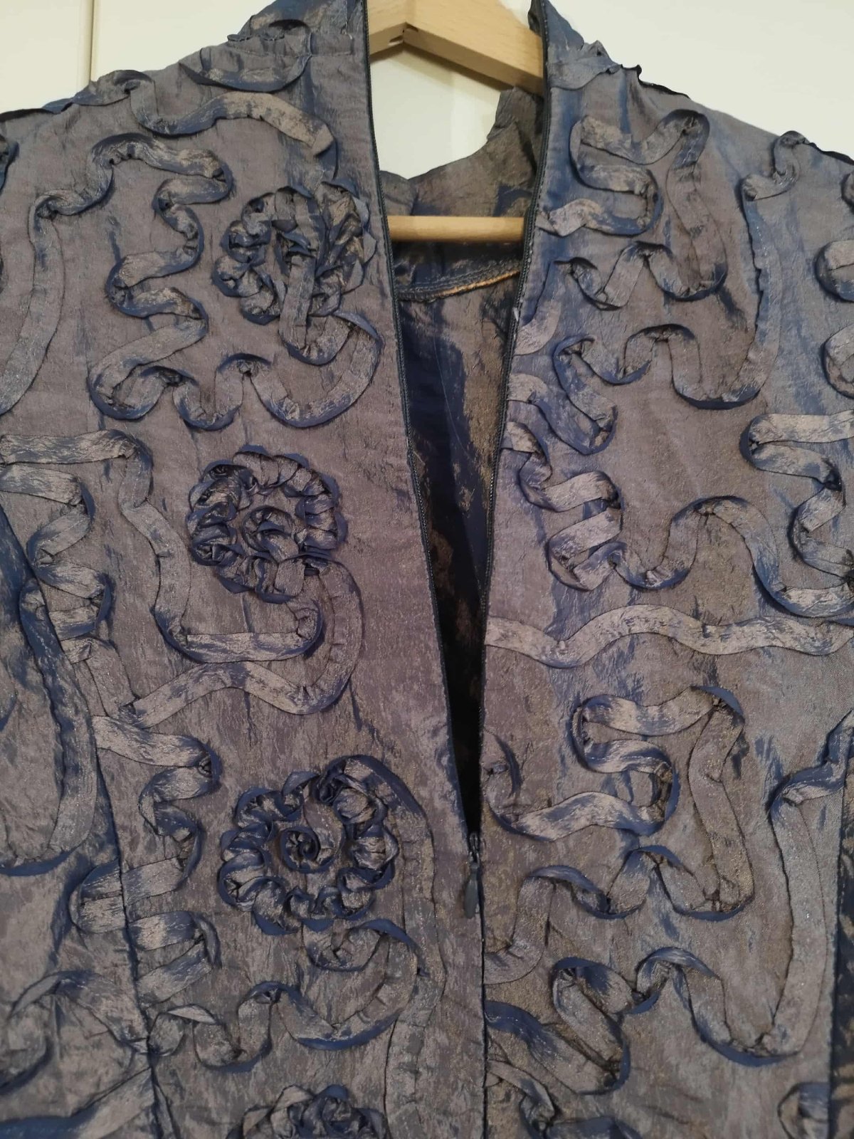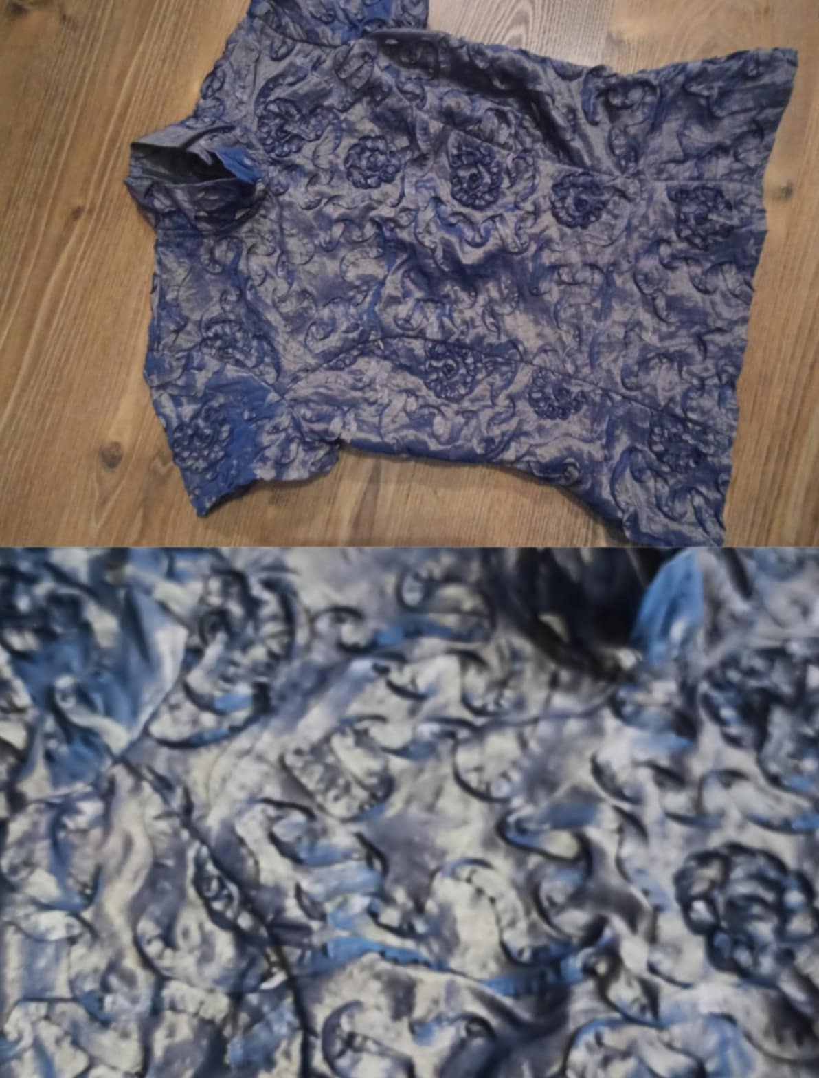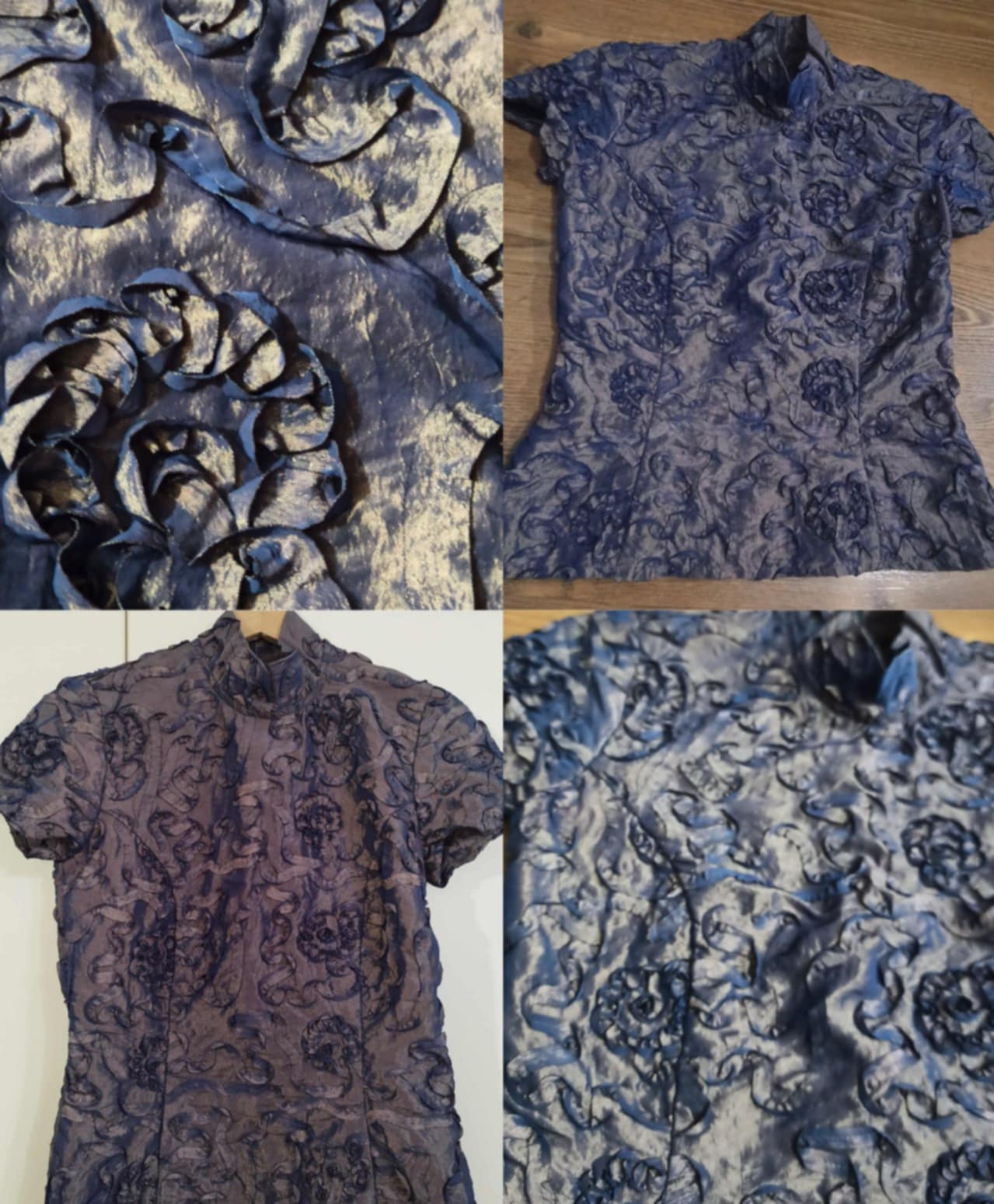Blúzka je v krásnej kombinácii zlatej s modrou , zle sa však fotí, farba na svetle skresľuje. Inak je nádherná. Bola príležitostne raz oblečená.