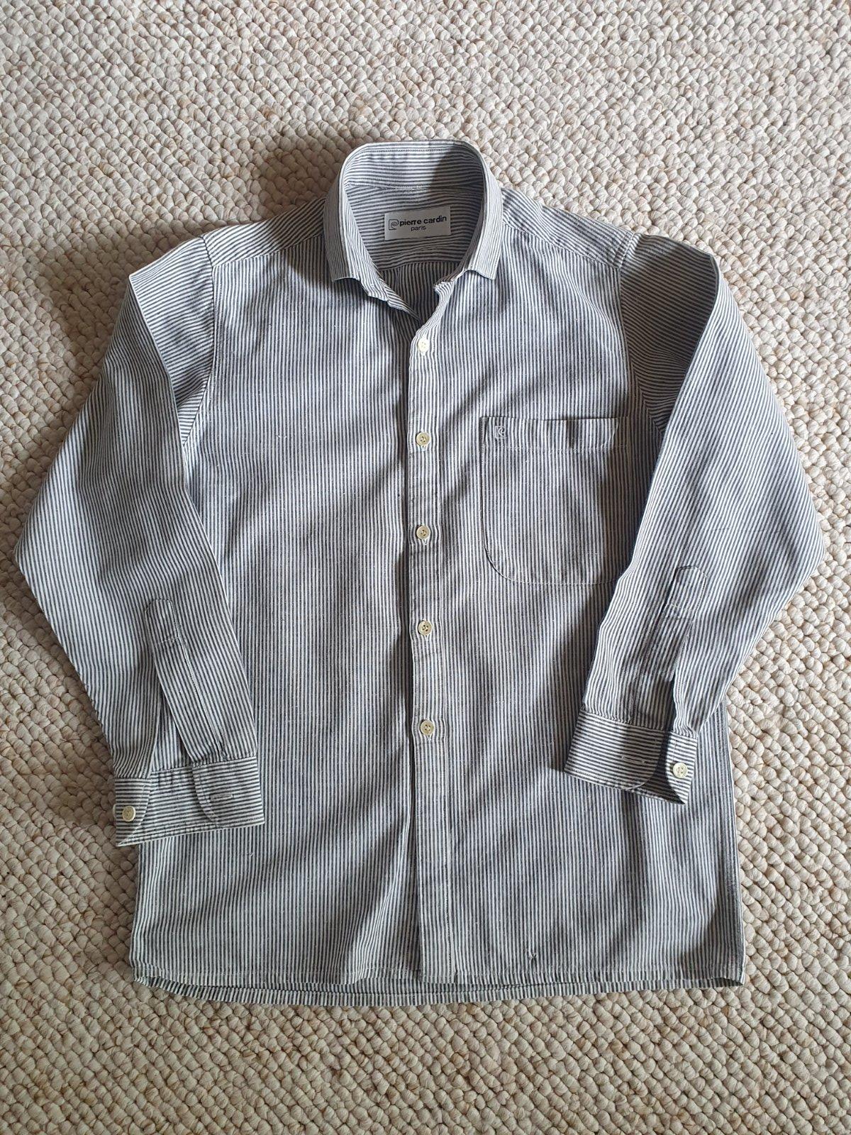 Krásna ľanová košeľa. Predám krásnu chlapčenskú košeľu značky Pierre Cardin. Je zachovalá. Krásna, kvalitne ušitá s dlhým rukávom. Predná dĺžka 63 cm, šírka pod pazuchami 46 cm, , dĺžka pleca 12,5 cm a dĺžka rukáva s manžetami 50,5 cm. Vzadu má sedlo a 2 záhyby. materiál bude zrejme zmes bavlny a ľanu. Nie je krčivá ako čistý ľan.