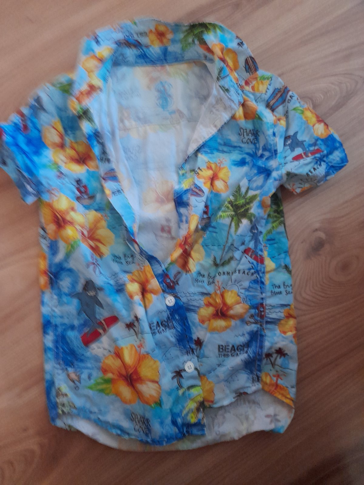 Ponúkam na predaj košieľku, nosená, ale stále vo veľmi peknom stave. Sedí na dvojveľkosť 122-128 rozmer: dĺžka: 48cm šírka: 37cm