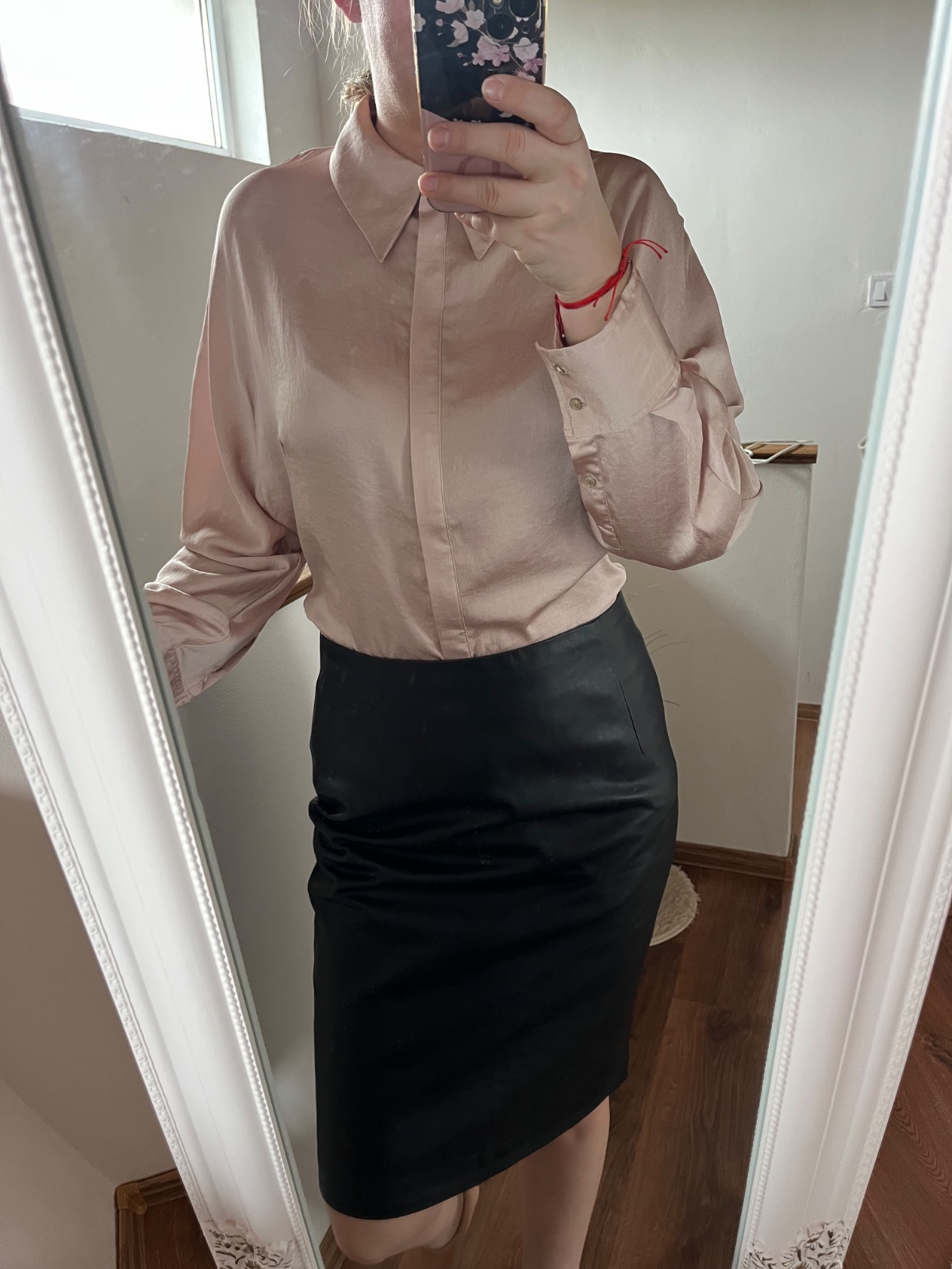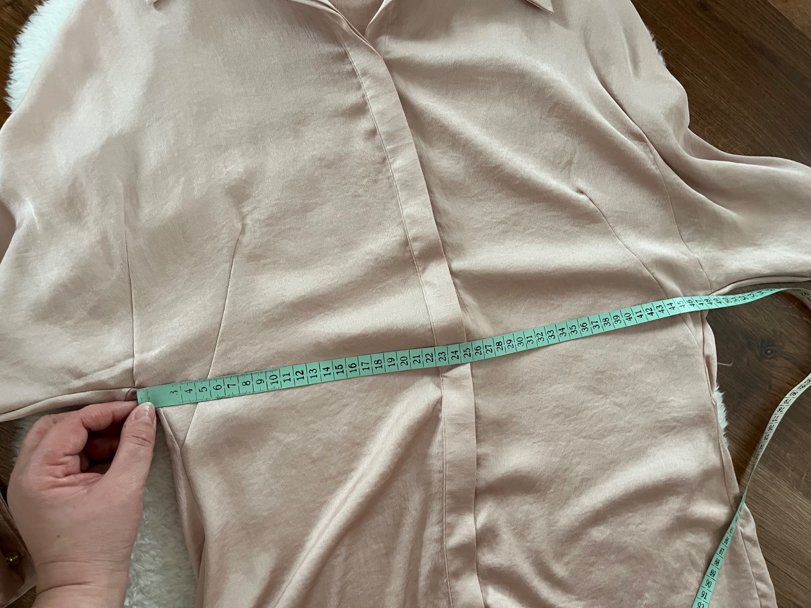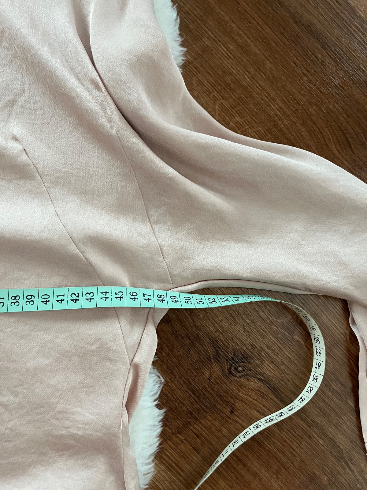 Veľkosť L, veľmi pekný stav. Miery na fotkách. Farba ako na foto - taká medzi ružovou a krémovou.