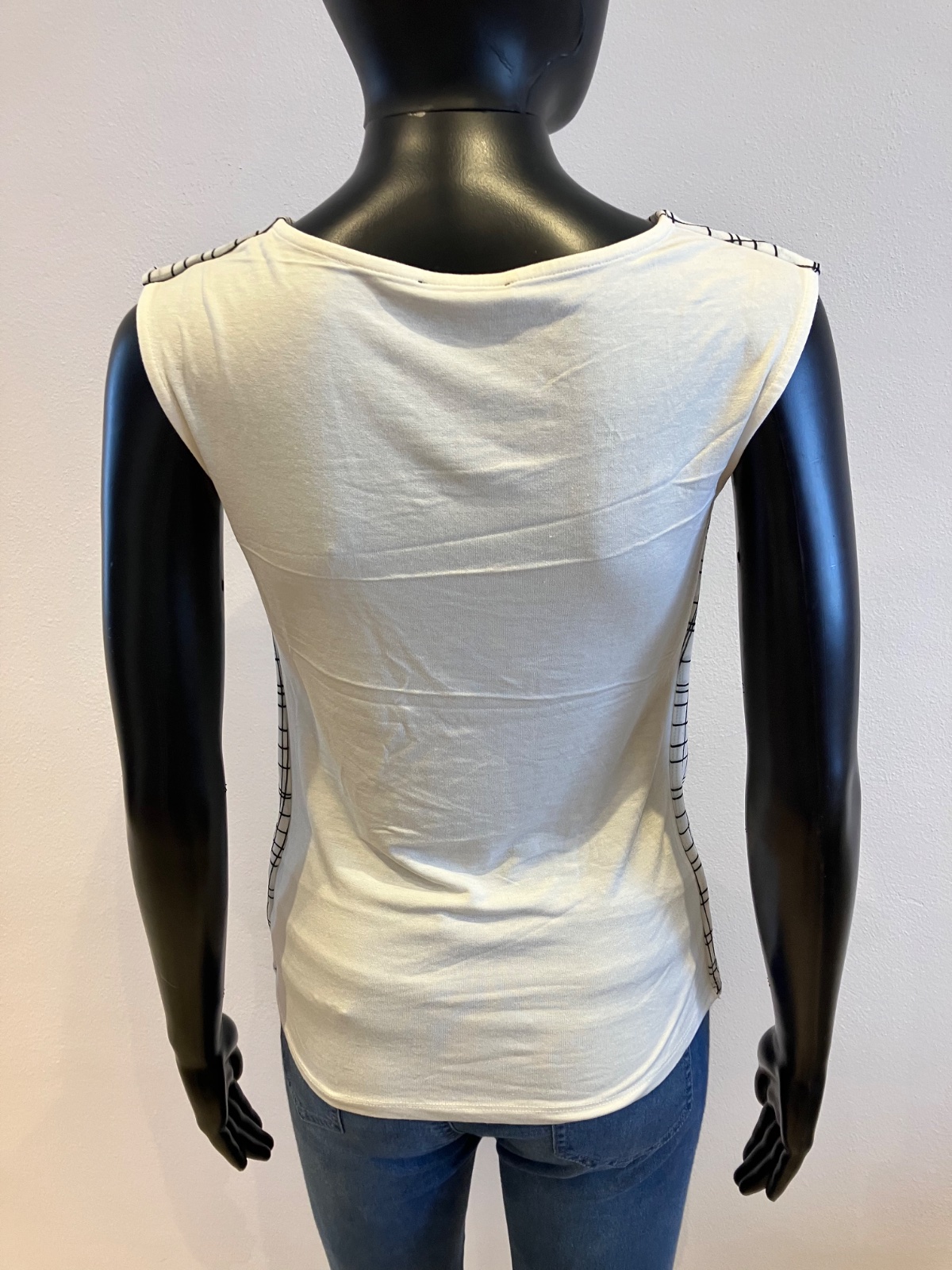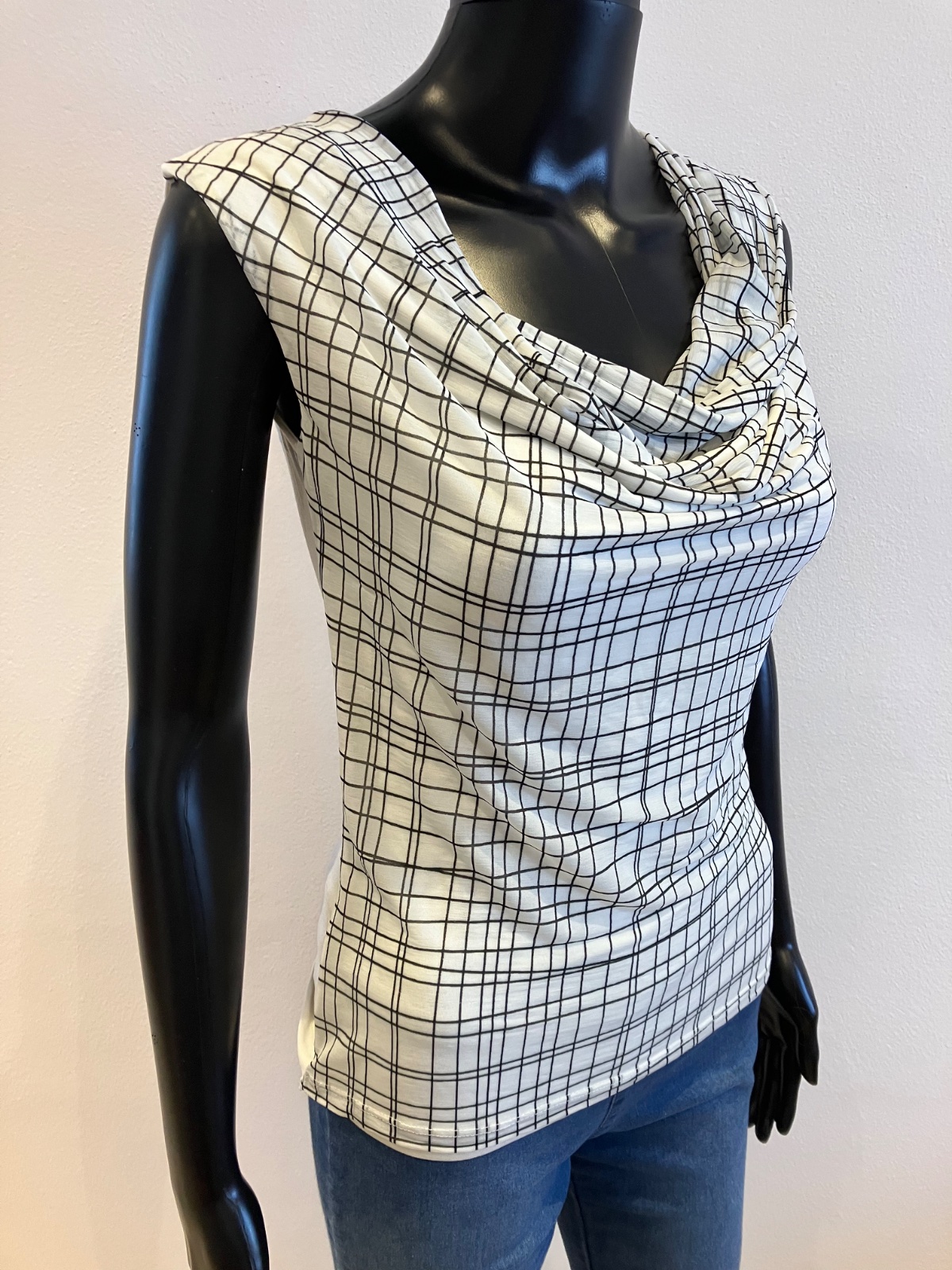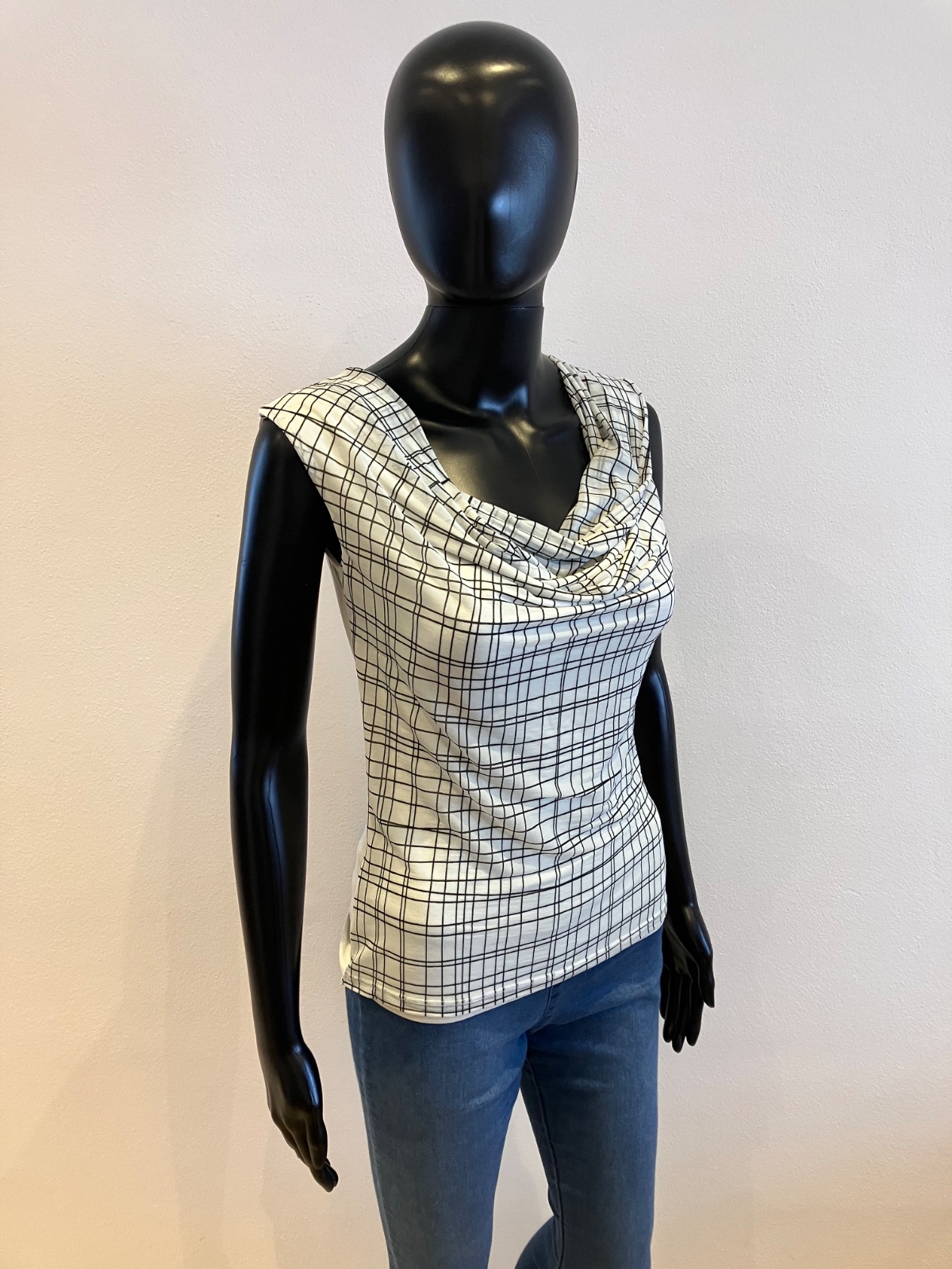 Vzorované tričko bez rukávov dámske, dievčenské , s padajúcim výstrihom, elastické, farba maslovo-čierna.