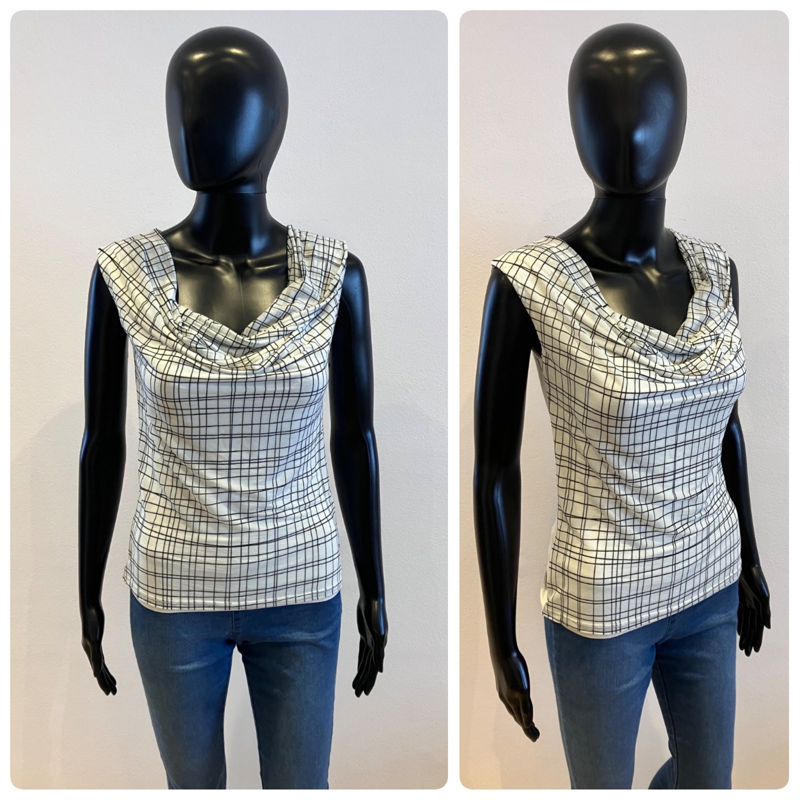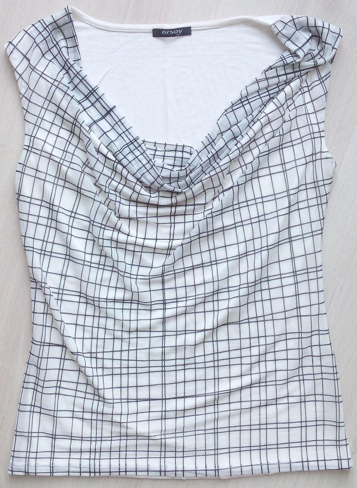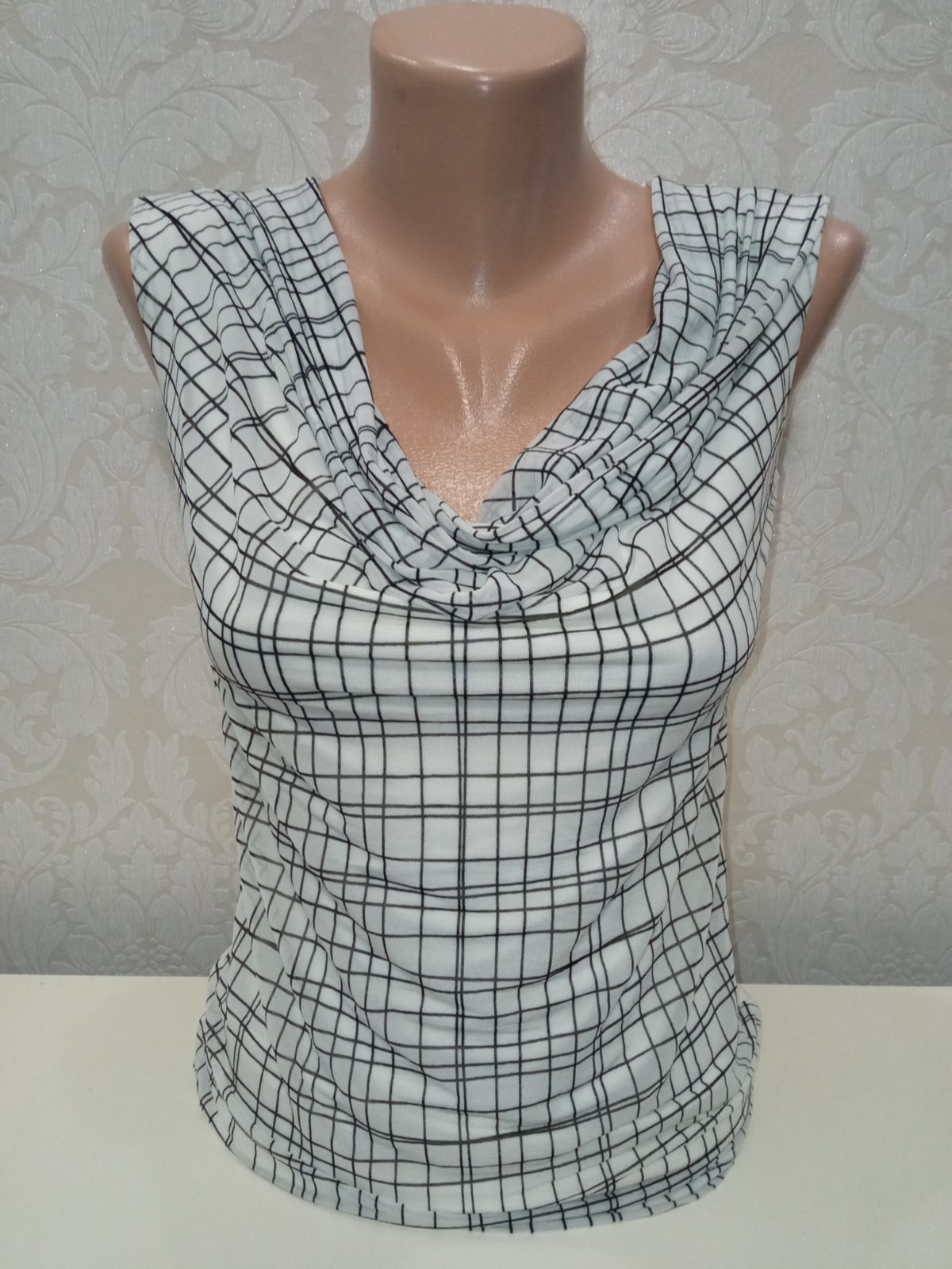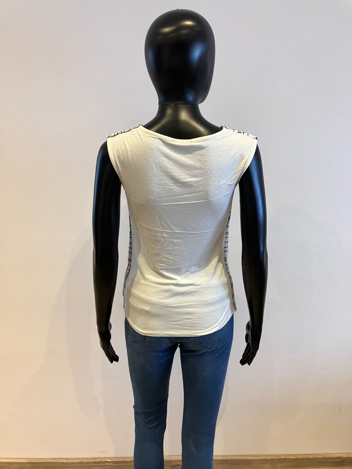 Vzorované tričko bez rukávov dámske, dievčenské , s padajúcim výstrihom, elastické, farba maslovo-čierna.