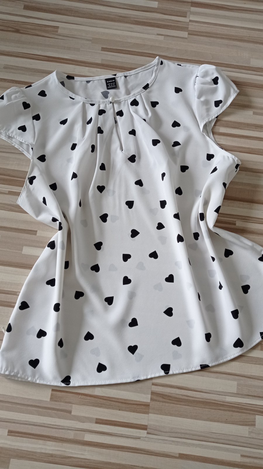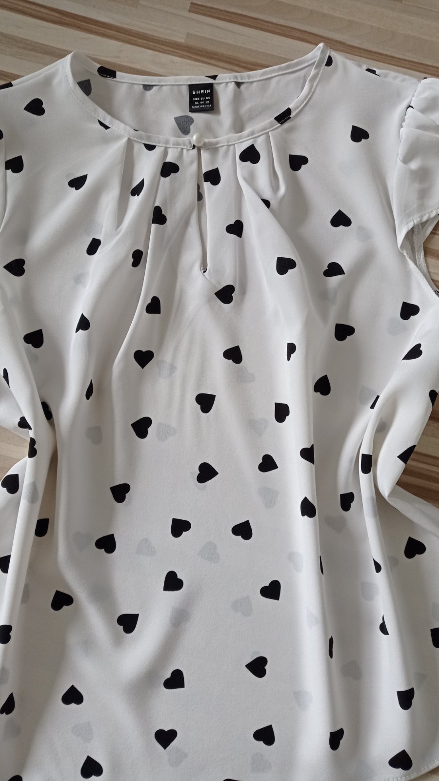 Predám krásnu blúzku so srdiečkami veľkosť XL (42-44), Zn.Shein, lahunka, vpredu perlovy gombicek, jemnučko riasene rukávy, top stav, oblečená raz