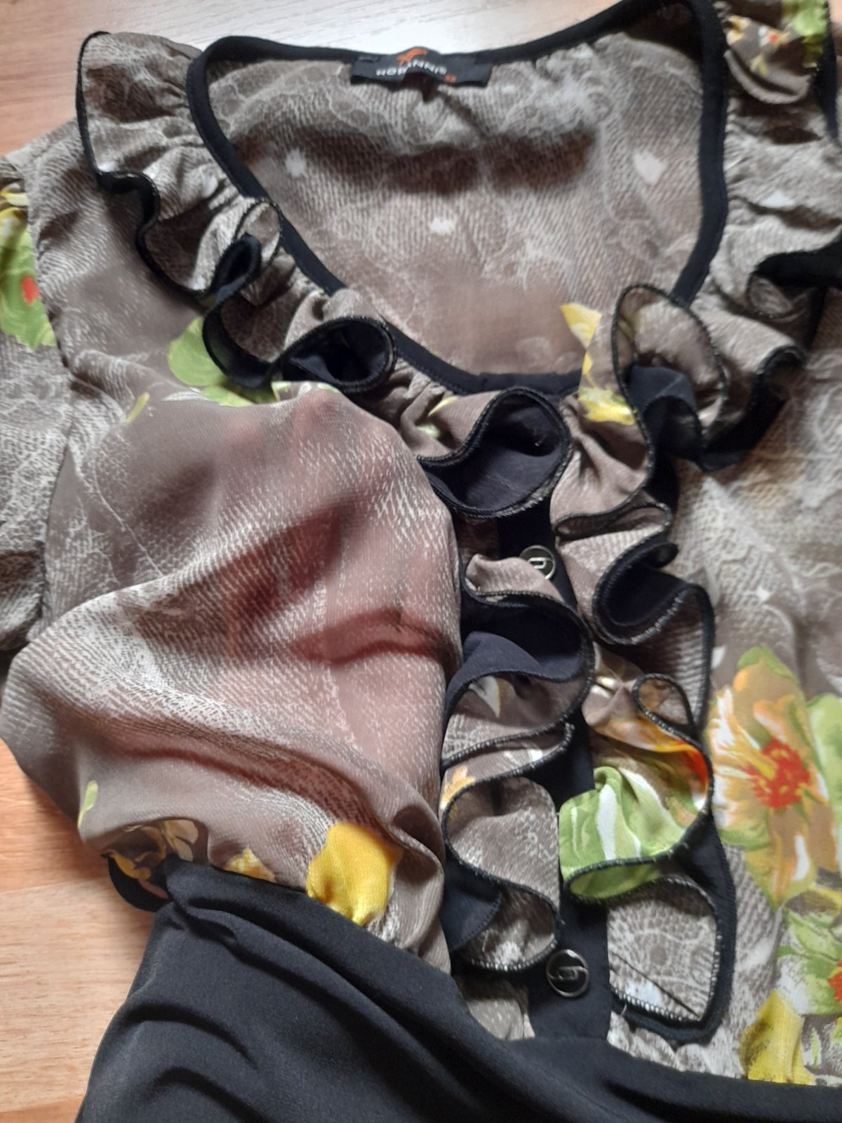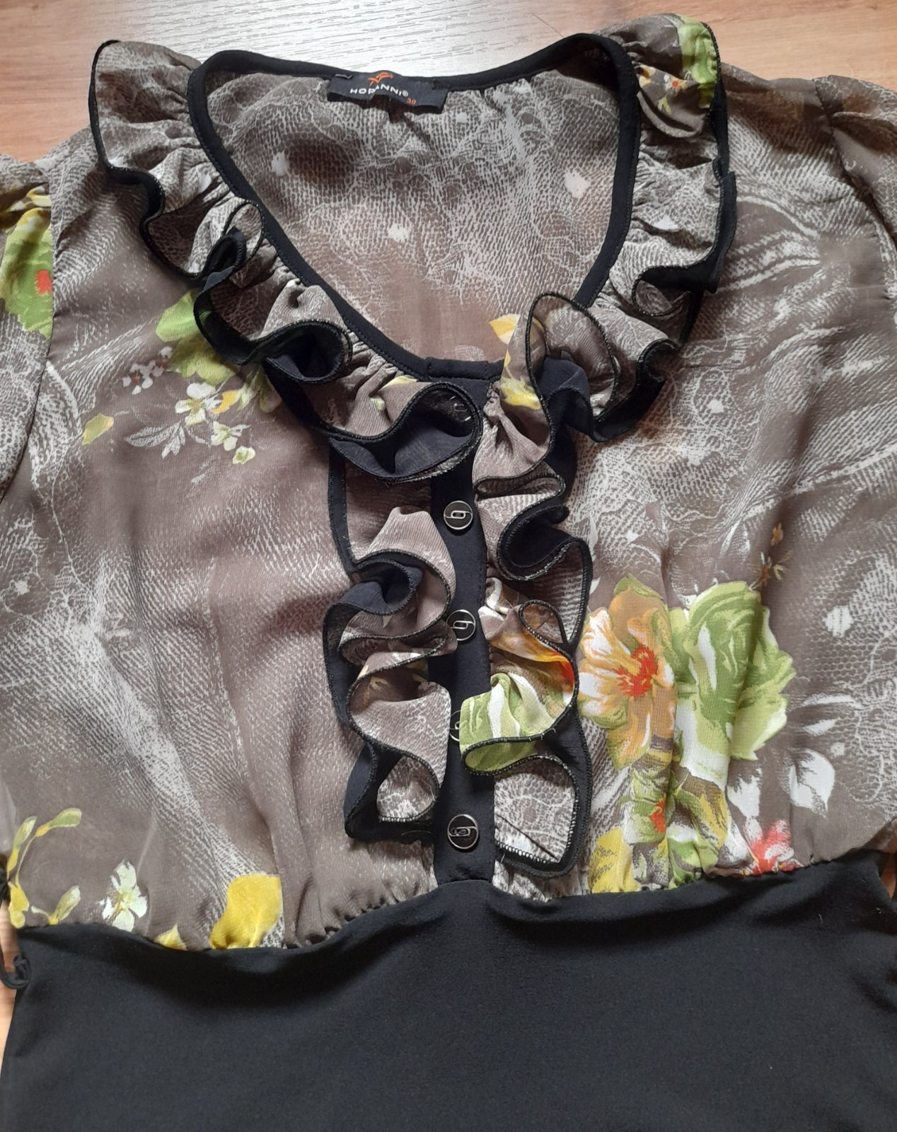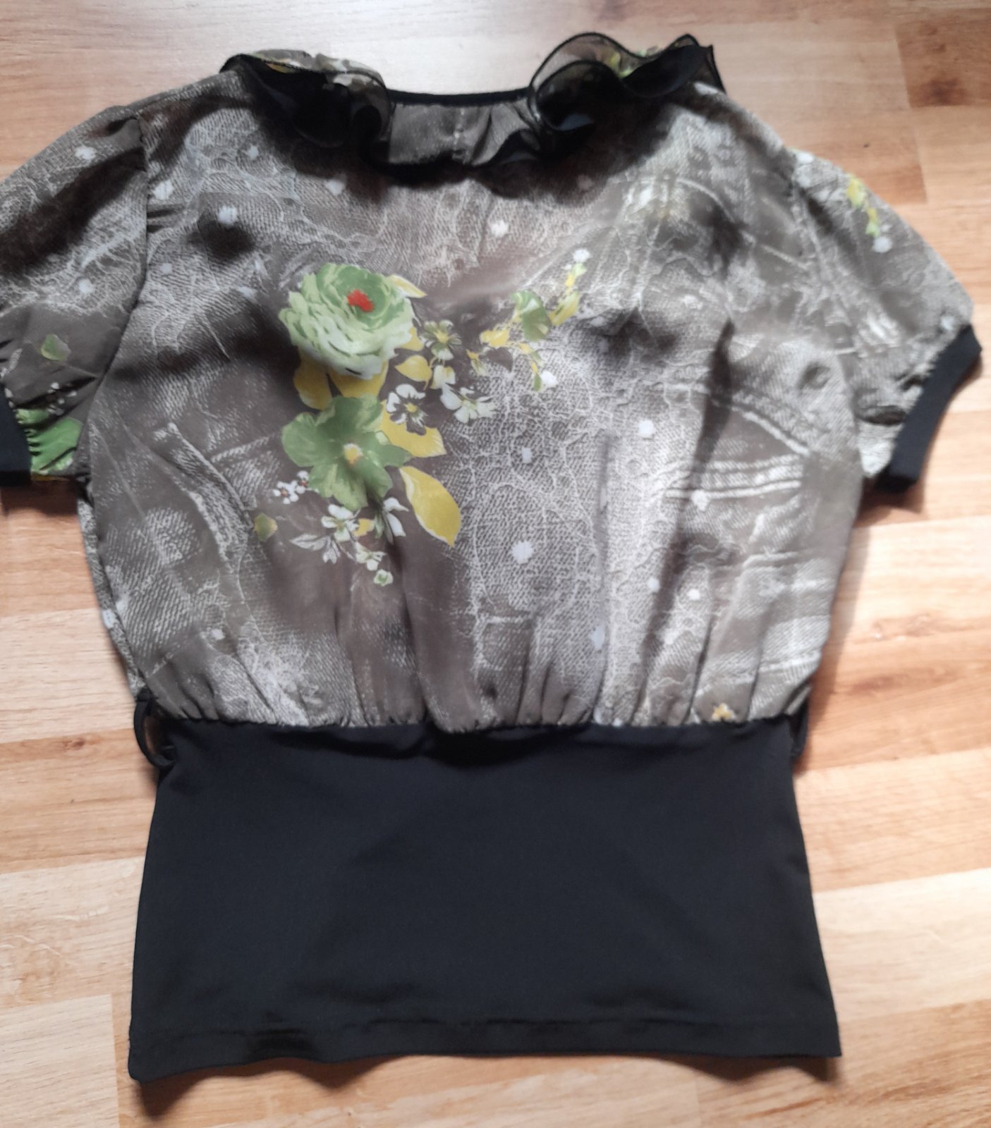 priehľadná, nová, dĺžka 55 cm , šírka cez prsia 50 x2 cm (pár cm navyše keďže nie je obtiahnutá ako košele), šírka pás kde je čierne 37x2 cm (natiahne sa ešte),vrch je šifón, spodok bude elastan / bavlna lebo je príjemný elastický