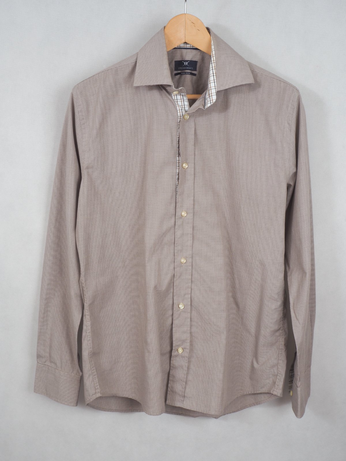 Kvalitná pánska košeľa bledohnedej farby, zapínanie na gombíky, materiál 100% bavlna, super stav.