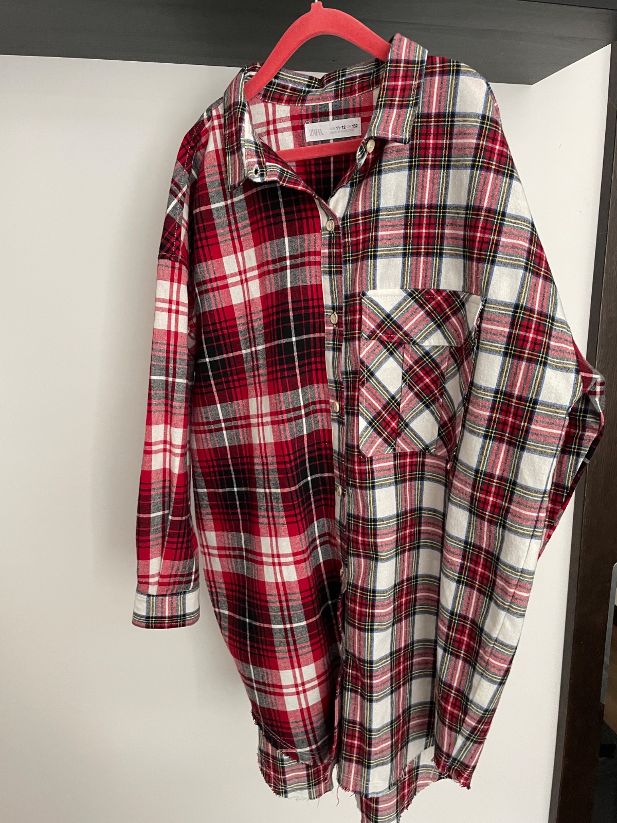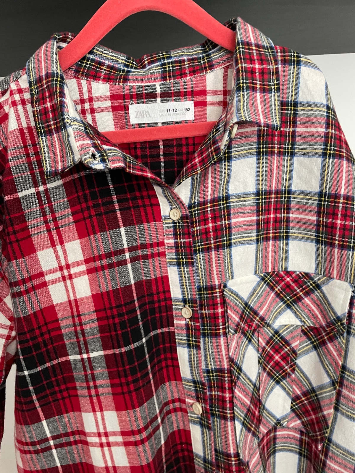 detská károvaná košeľa s peplum volánom Zara veľkosť 152 dĺžka 55, šírka 38, rukáv 54cm