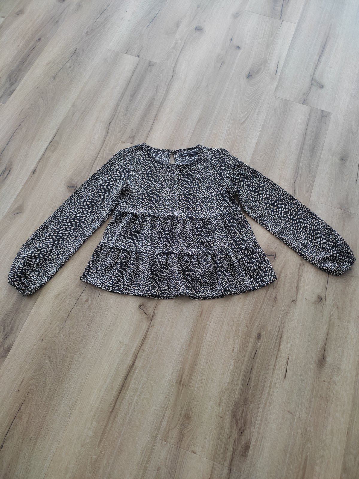Veľmi pekná tunika ,nosena krátko,lebo sme vyrástli.Vel.je písaná xxs,ale sedí aj na xs.Celkova dĺžka 53cm,šírka pod 43cm.