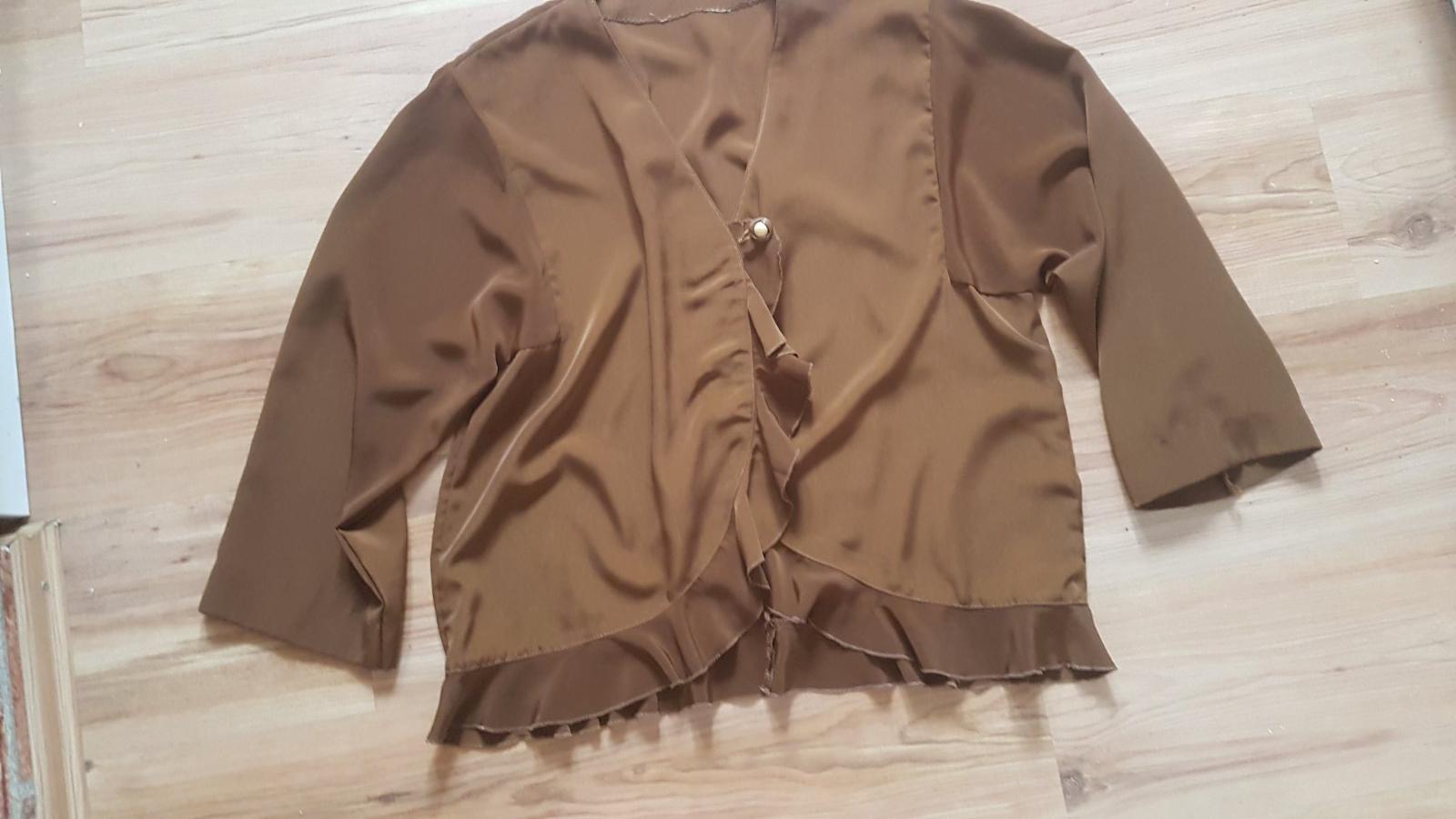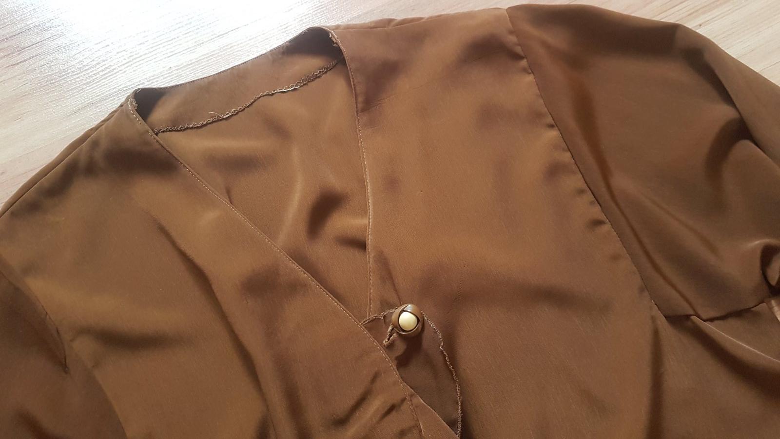 Elegantná saténová blúzka hnedej farby. Dlhý rukáv, s krytým zapínaním. Nosená málo, nepoškodená. Zn. Camaieu. Pozrite celý môj bazár, pri kúpe viac vecí sa rada dohodnem na zľave.
