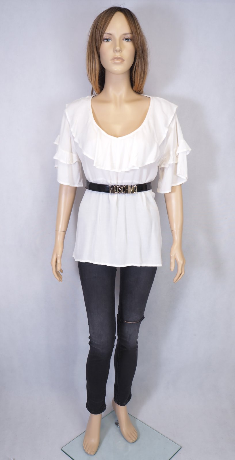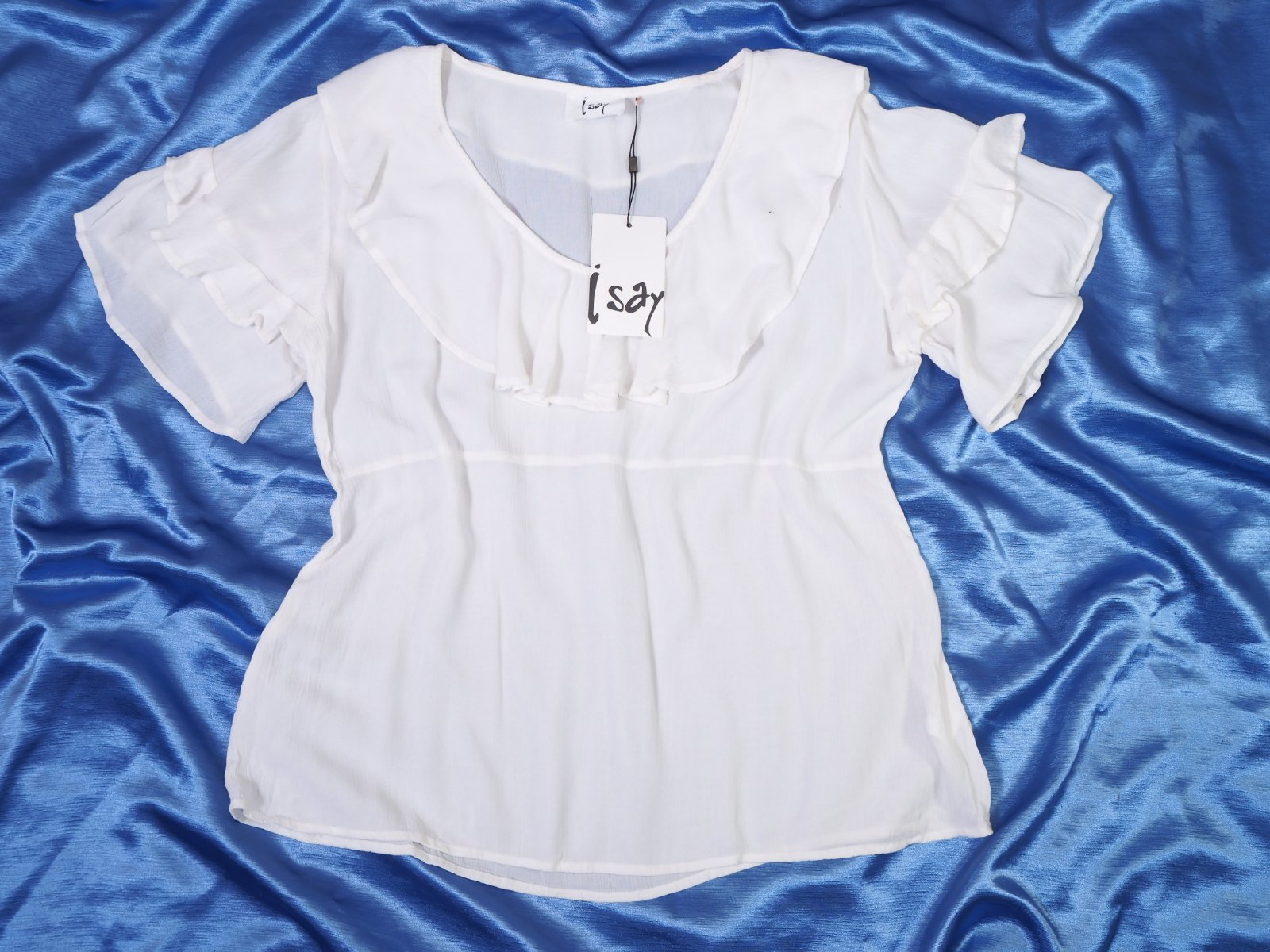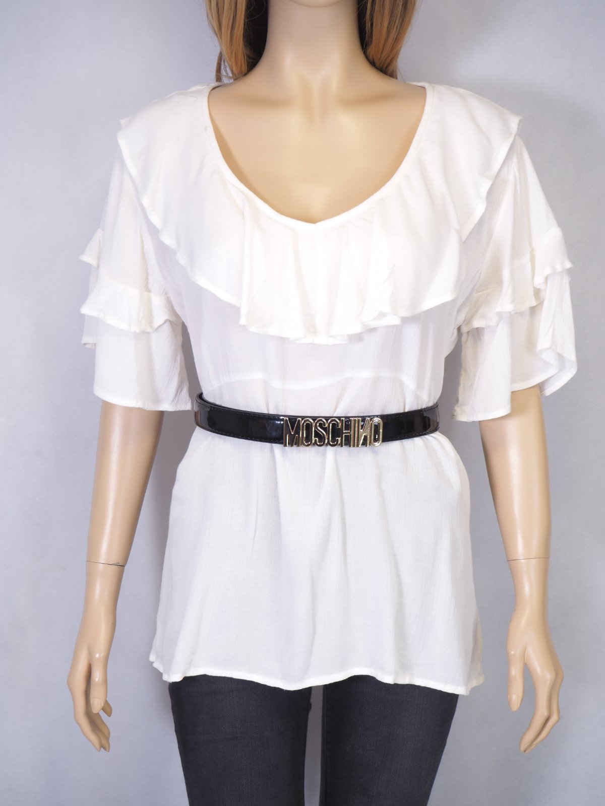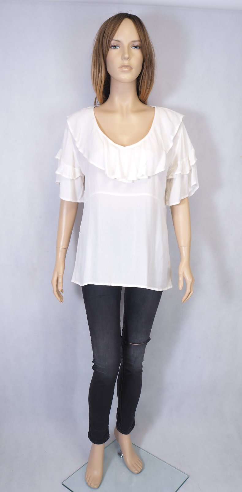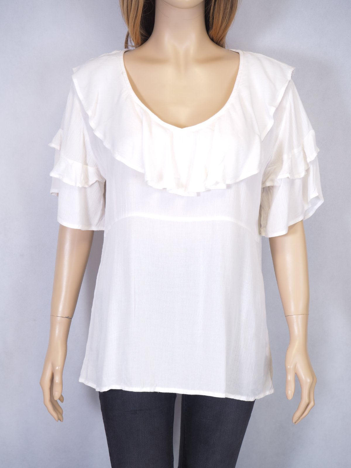 Kvalitná biely blúzka/top s volánikami, materiál 100% viskóza, nový s visačkou....