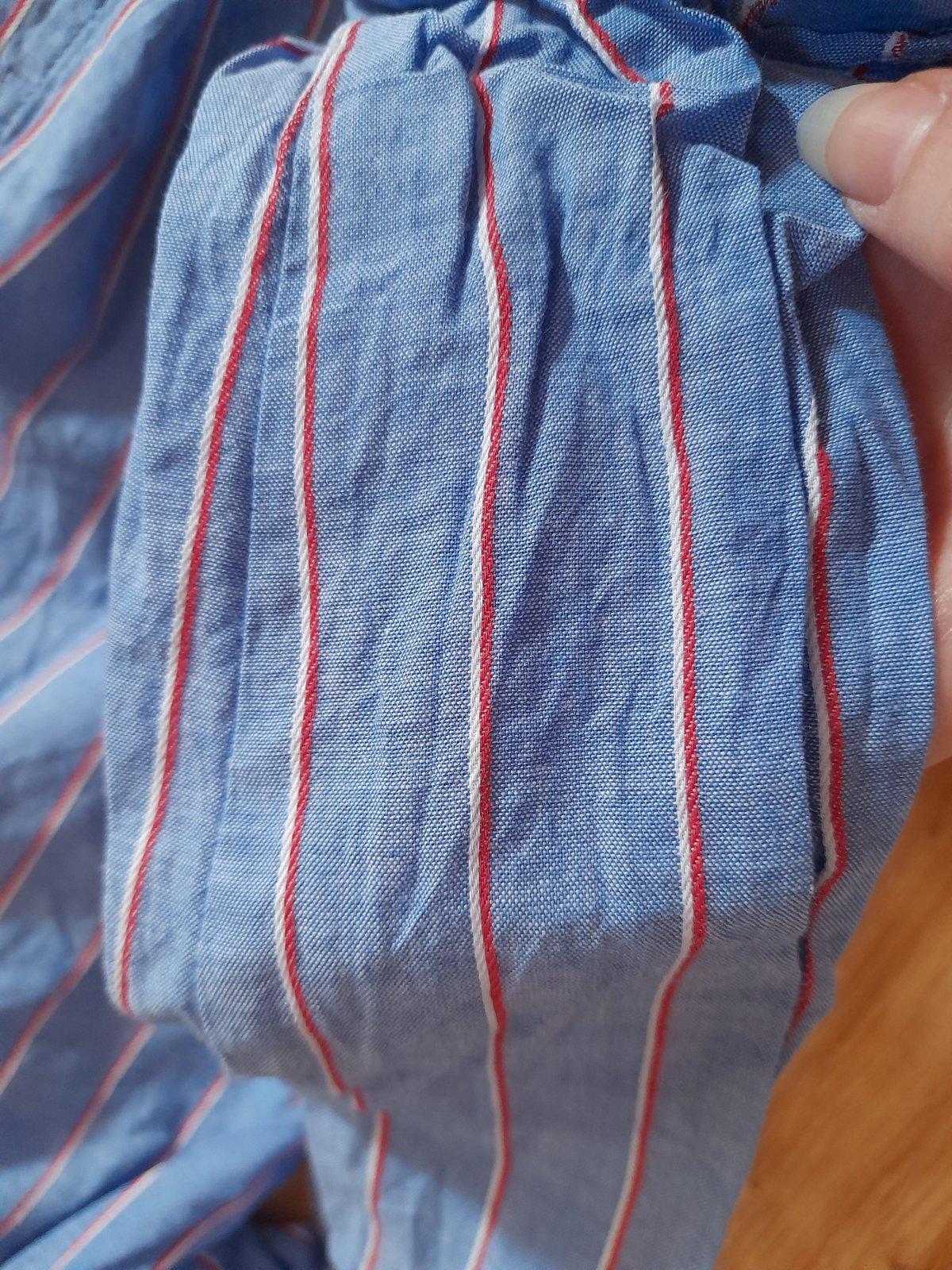 Krasna riflova kosela velmi prijemny jemnucky material. Nema znamky pouzivania. Doplnena velmi pekny gombikmi. Rukav moze byt dlhy ale da sa aj vytiahnut. Dlzka kosele je 64cm
