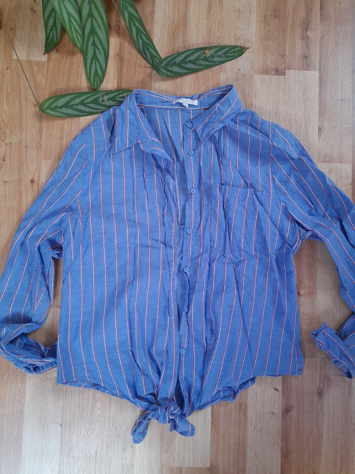 Bledomodrá blúzka s jemnými prúžkami ZARA, oblečená 1x, super top stav, ako nová, krásna jemná blúzka, pohodlná, má roll-up rukávy, dajú sa vyhrnúť a zmeniť na krátke, je jemne elastická, túto istú...
